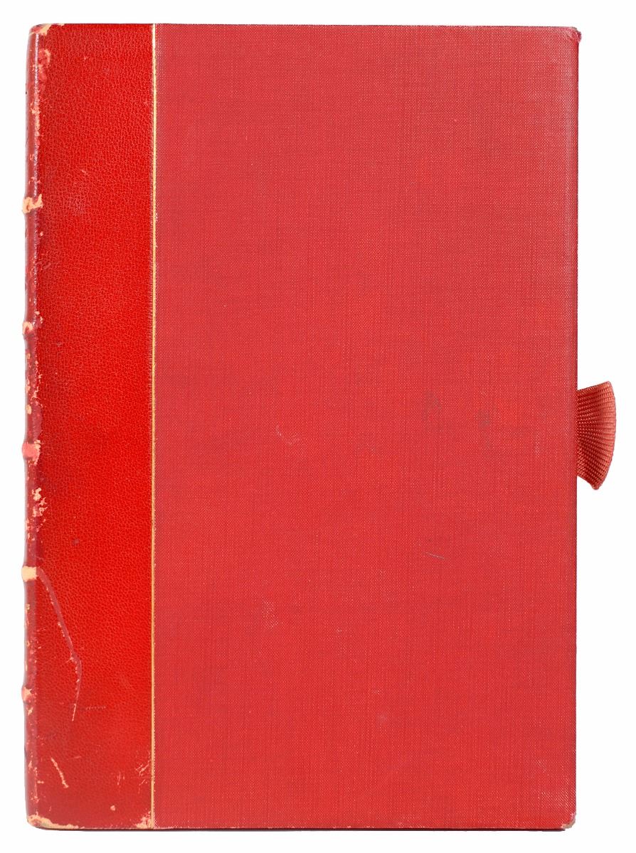 Magnificent signed edition of the catalog for a book auction entitled ‘Going, Going, Gone!,’ 47 pages, 6 x 9, held on December 8, 1938, by the Joint Distribution Committee and Committee for Christian German Refugees, signed below their preface statements in fountain pen, “A. Einstein” and “Thomas Mann.” Includes the supplementary booklet and original red morocco case. Autographic condition: fine. Book condition: VG–/None, with wrap separated from spine but still attached along rear hinge. In a VG– custom-made case.