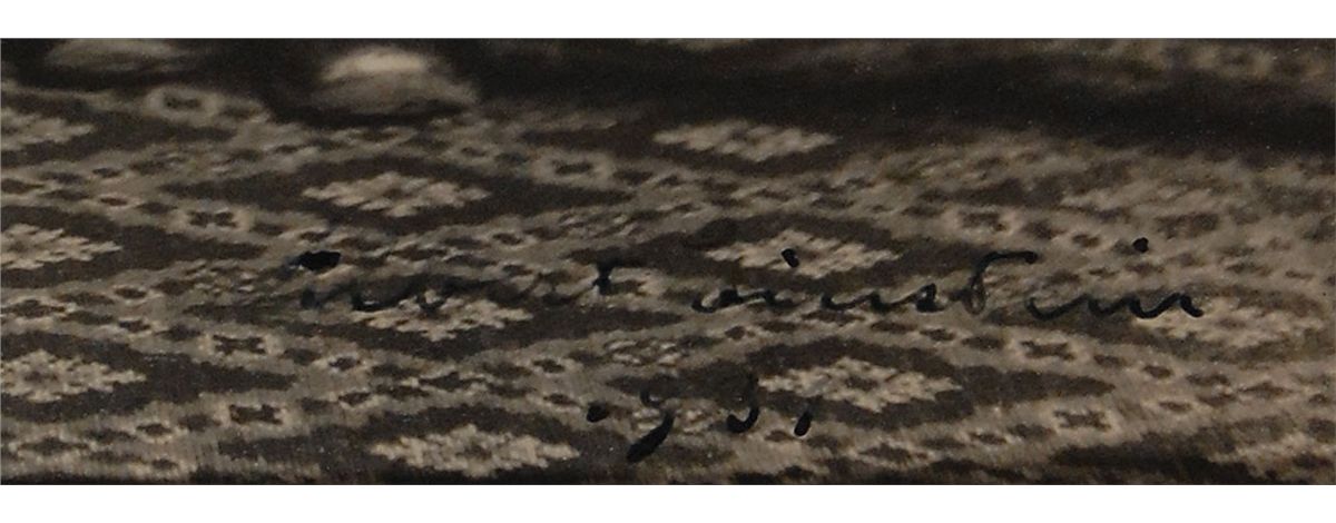 Incredible vintage matte-finish 7.25 x 9 portrait of Einstein seated at a table with astronomer Charles Edward St. John, signed in the lower right in black ink, “Albert Einstein, 1931.” Also signed in the lower left by the photographer, “Portrait by E. Willard Spurr, Pasadena, Calif., Feb. 1931.” Displayed in its original photographer’s presentation folder (which exhibits partial separation to folding cover hinges), to an overall size of 10 x 13.75. In fine condition, with moderate irregular adhesion and contrast to the signature. Originates from the estate of Spurr’s son, the famous Hollywood photographer Melbourne Spurr.