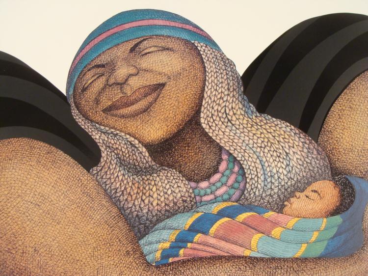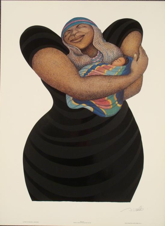 There's clearly nothing more dear to the woman in this art print than her baby. Artist: Albert Fennell Title: Pride and Joy Image Size: 25 x '17 1/2 inches. Paper Size: 30 1/2 x 22 1/2 inches. Notes: Signed lithograph