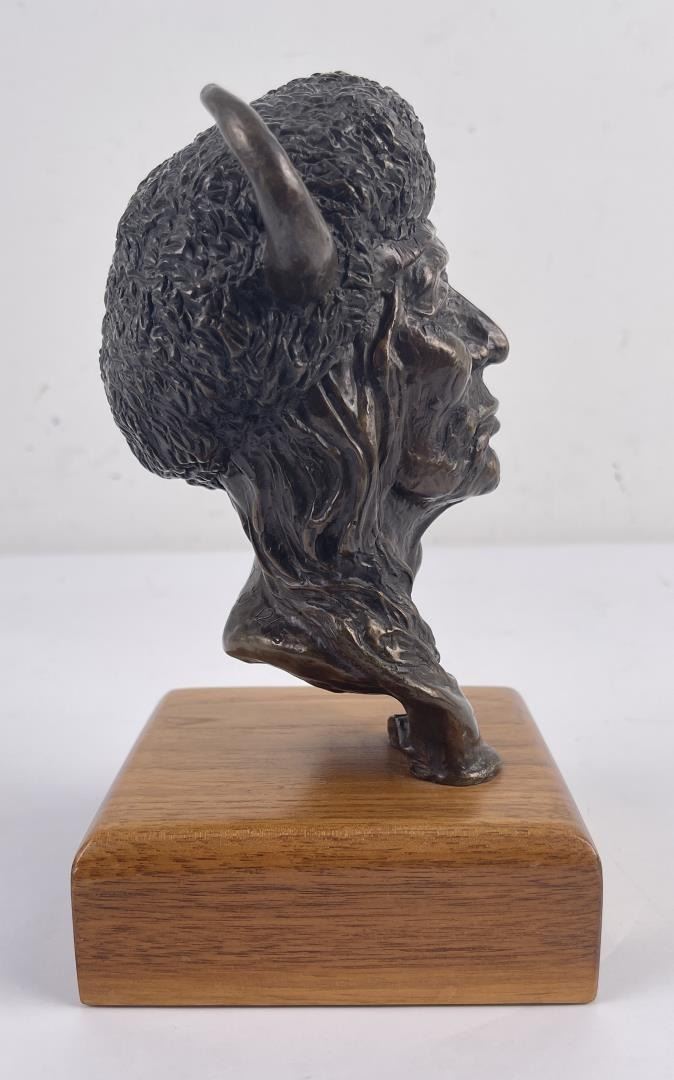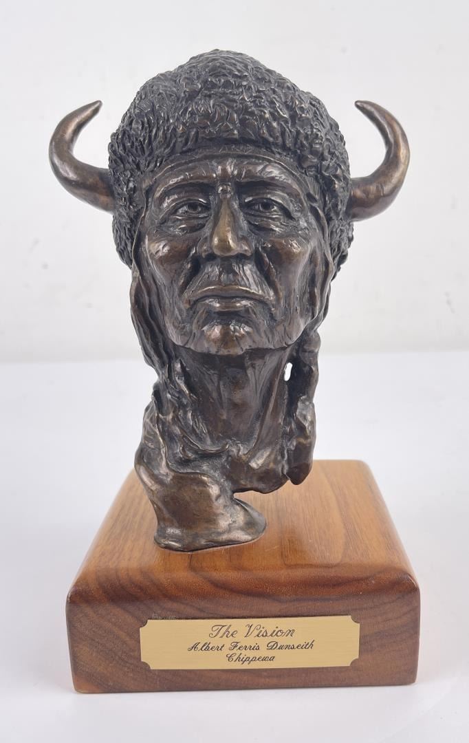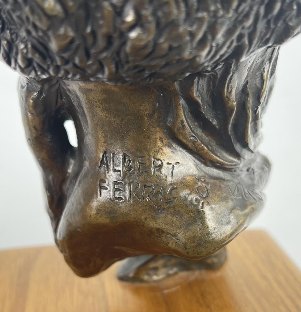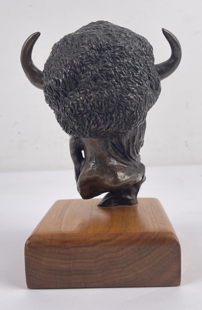 8 1/2" tall. Albert Ferris (1939 - 1986) was active/lived in Minnesota, North Dakota. Albert Ferris is known for Sculpture, painting, illustration. Albert Lee Ferris (1939-1986) was a Native American genre artist. He was an enrolled member of the Turtle Mountain Band of Chippewa Indians and also had Lebanese/Arabic ancestry. His works have been exhibited at the Smithsonian's National Museum of the American Indian, Kennedy Center for the Arts, the Southern Plains Indian Arts Museum, and other galleries across the United States. Albert Lee Ferris was born on July 17, 1939 on the Turtle Mountain Indian Reservation in north-central North Dakota. The oldest of 4 sons born to Samuel Ferris and Dora Charette, he spent his formative years living in a multi-cultural family environment, with strong American Indian and Lebanese cultural influences from his family. He attended the School of the Art Institute of Chicago and the University of North Dakota prior to entering the US Army during the late 1950s.