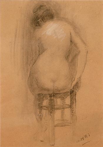 1881-1956 RCA <BR> Seated Nude <BR> Pencil & chalk <BR> Signed with initials <BR> 10.25 x 7.25in., 26 x 18.4cm. <BR>