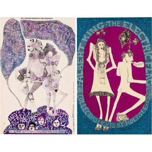 <B>Albert King and Country Joe Fillmore/Winterland Concert Poster BG-117 and BG-118 Group (Bill Graham, 1968).</B></I> These two posters feature whimsical designs by artist Mari Tepper, and feature complimentary colors. The lot includes BG-117 (Albert King/Electric Flag, VG+) and BG-118 (Country Joe and the Fish/Moby Grape/Hour Glass/United States of America, VG), both measuring approximately 13.5" x 21, and both printed only one time.<BR><BR><b>Shipping:</b> Flat Material, Large (<a target="_blank" href="http://www.heritageauctions.com/common/shipping.php">view shipping information</a>)