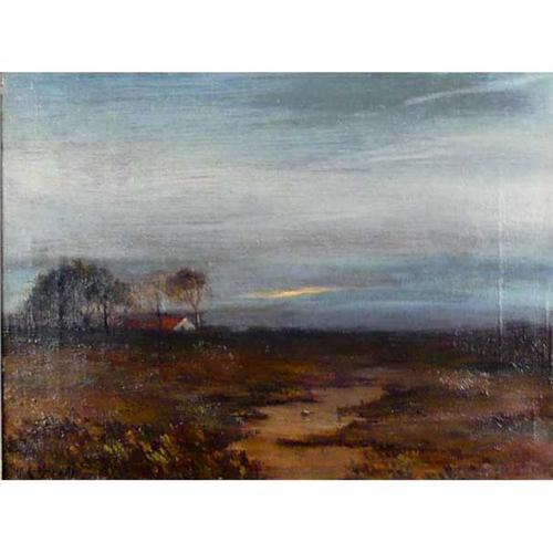 Albert Lorey Groll (1866-1952), Oil on Canvas, Red Roof, 12" x 16", Signed lower left.