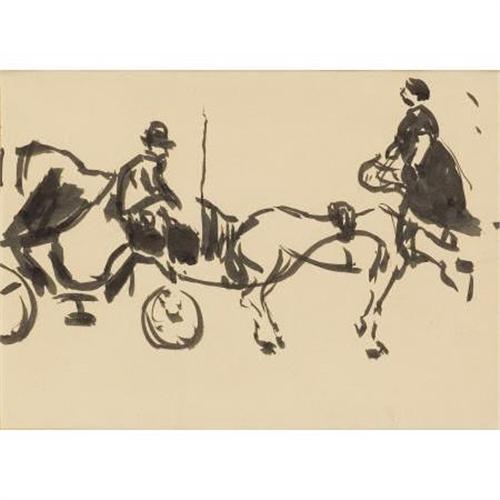 <B>ALBERT MARQUET (French, 1875-1947)</B></I><BR><I>Study of Horse and Carriage</B></I><BR>Ink on paper<BR>6-1/2 x 8-1/2 inches (16.5 x 21.6 cm)<BR> <B>Condition Report:</B> Paper hinged in upper left and right corner, paper slightly toned, otherwise good condition.<BR><BR><b>Shipping:</b> Framed - with Glass, Small (<a target="_blank" href="http://www.heritageauctions.com/common/shipping.php">view shipping information</a>)