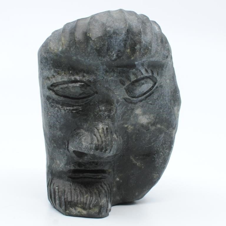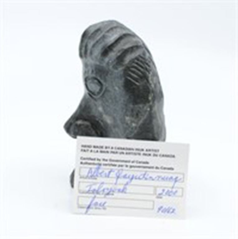 Albert Qayutinnuaq's "Face" original Inuit carving. Carved in 2000, from the community of Taloyoak. Carved from stone, and certified by the government of Canada. This carving is in excellent condition. Included with its certification tag.