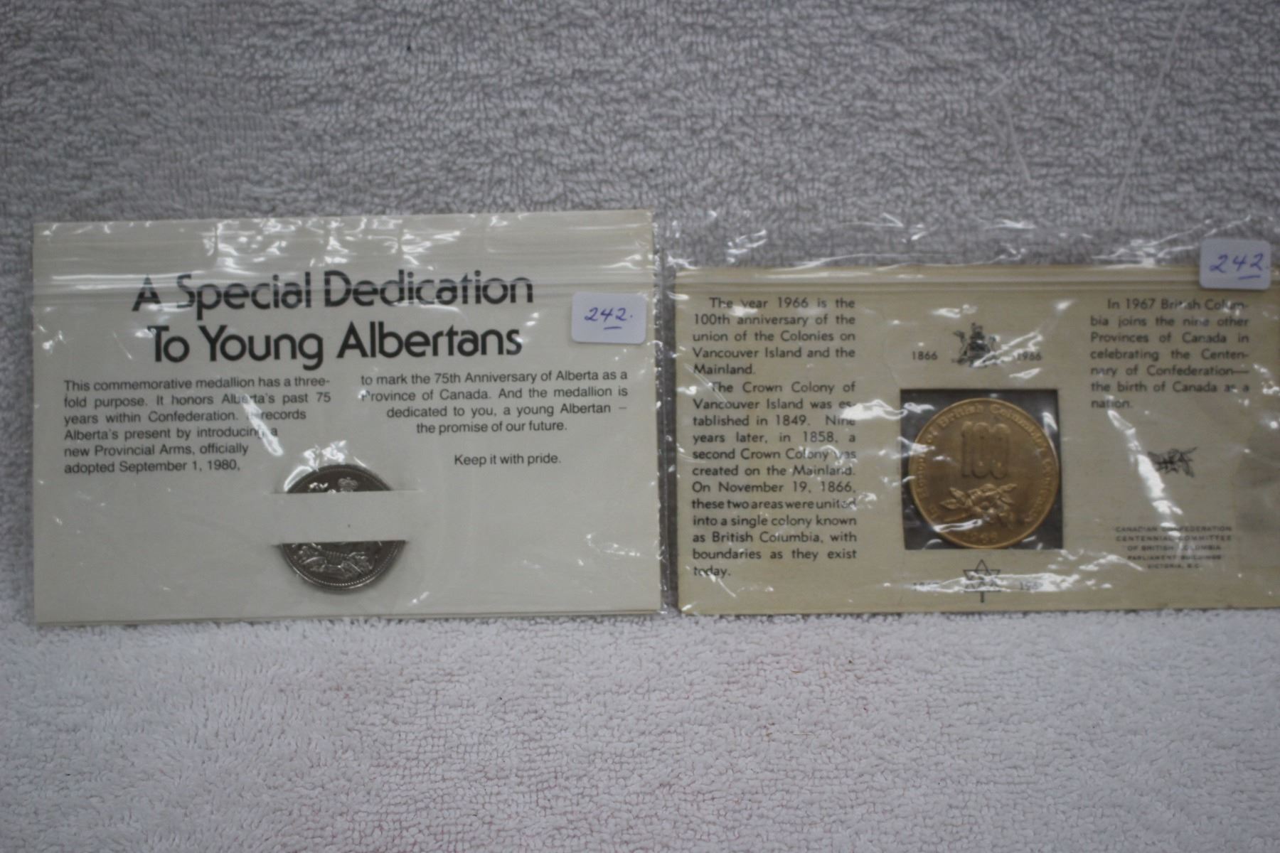 Alberta Provincial Arms Medallion (1) 1980 & B.C. 100 Yr Medallion