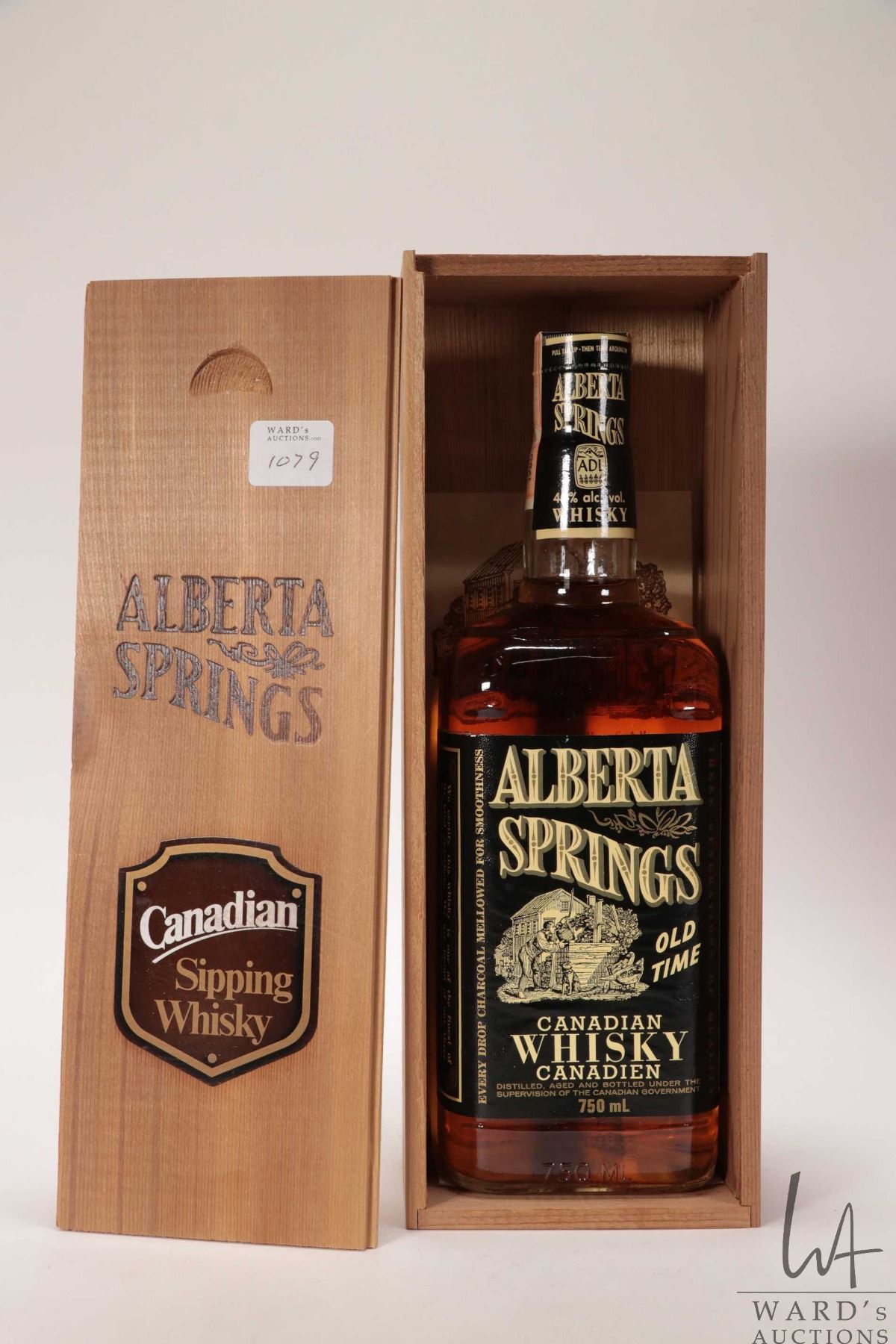 Alberta Springs/ Old Time Canadian Sipping Whisky/ 750ml/ 40% ABV/ Includes original 1980 excise label and wooden box Note: Alcohol cannot be insured by any courier in Canada. Local pick up is recommended. Canadian bidders only.