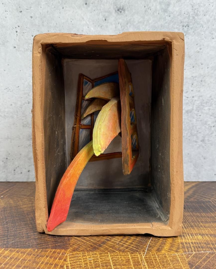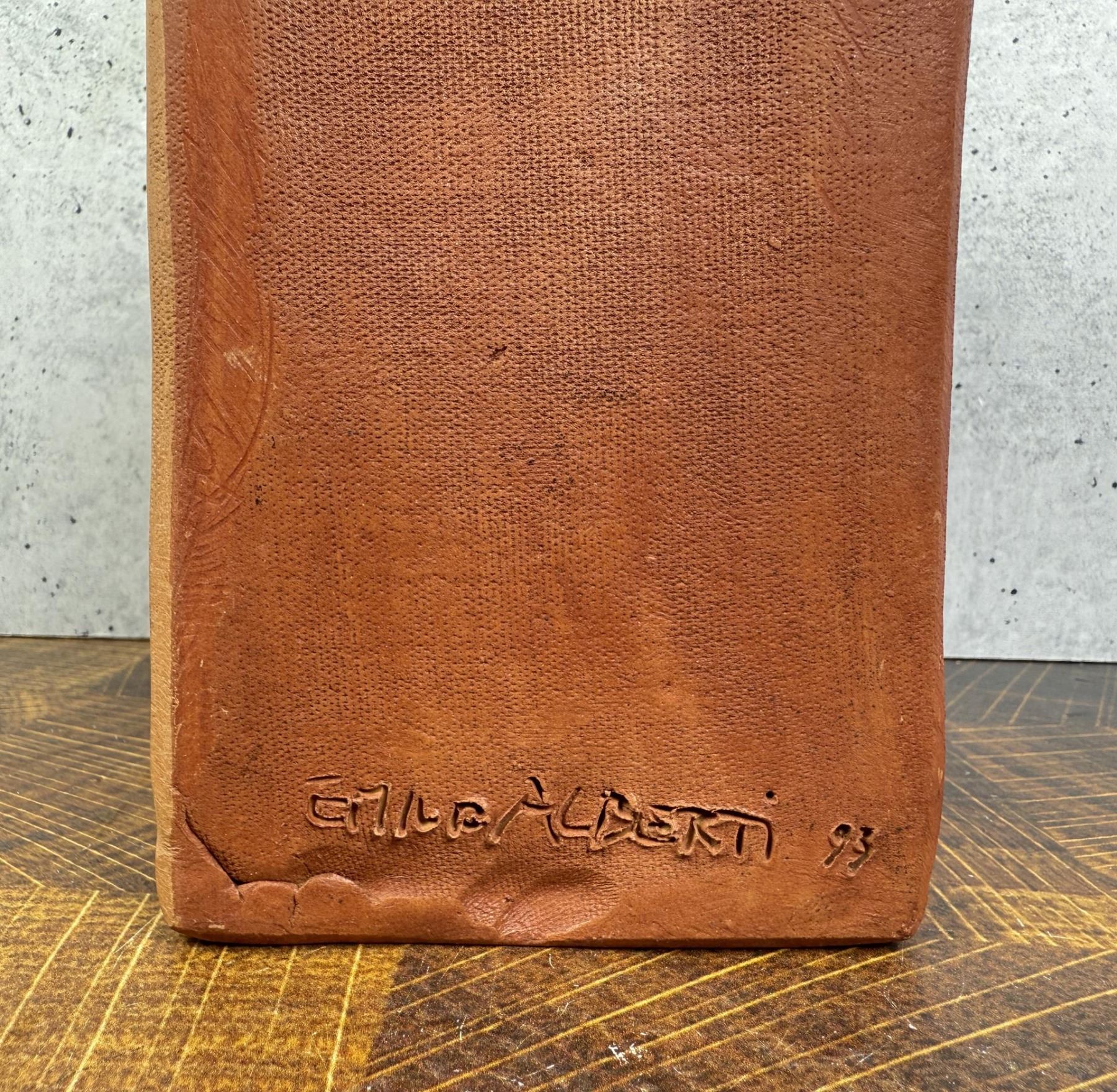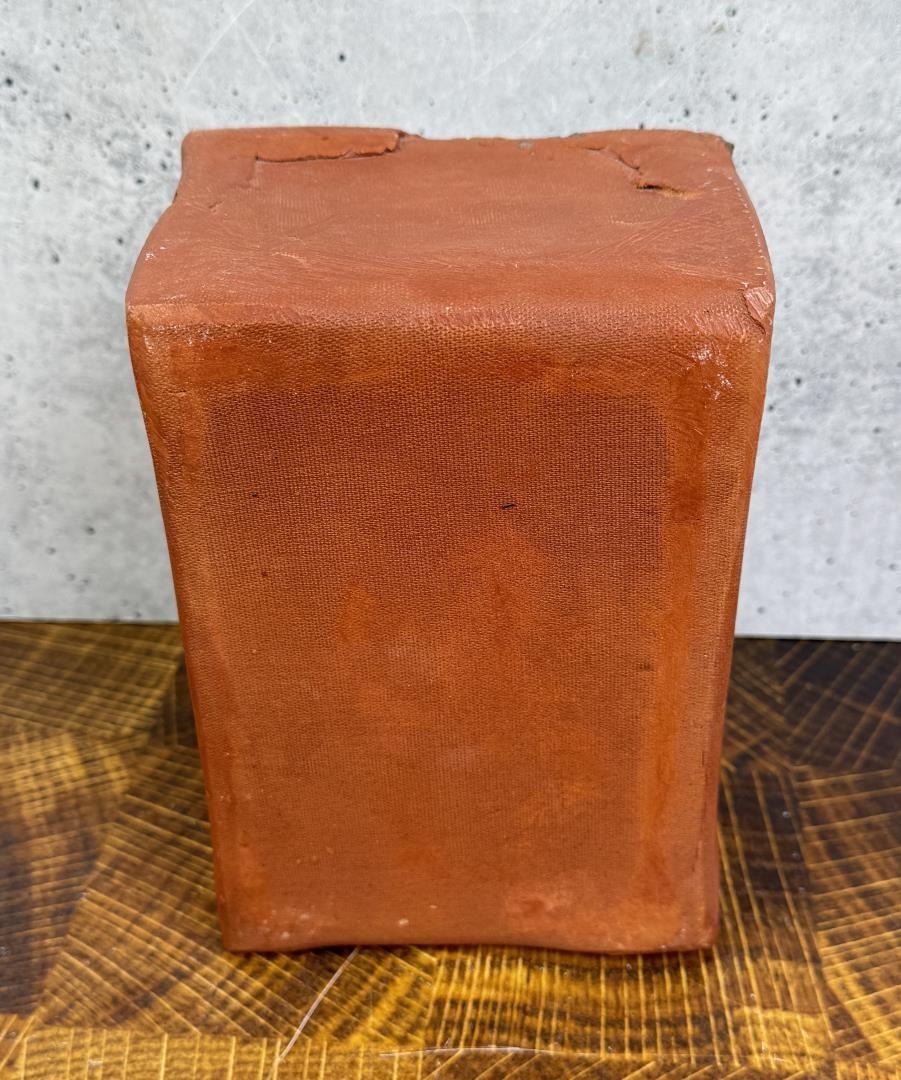 6 7/8" by 5 1/8" by 3 7/8". Signed as shown.