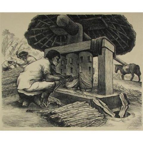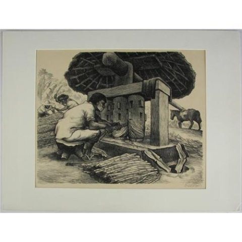 Alberto Beltran, Lithograph , (5545) Alberto Beltran (1923-2002) (Mexico) Lithograph, "Grinding Sugar Cane", image size 11 1/8" x 13 3/4", Pencil Signed, from the "Mexican People" Series
