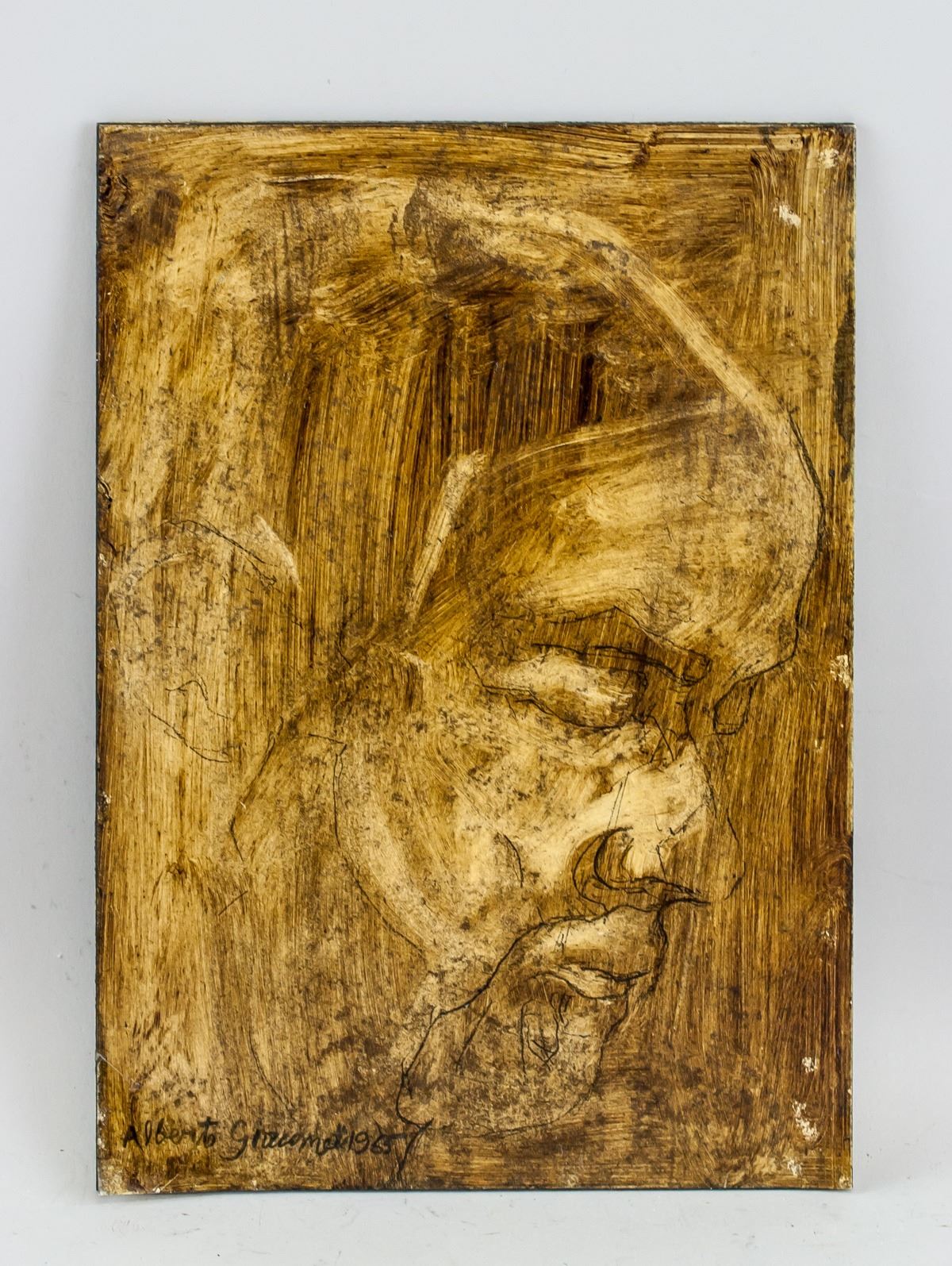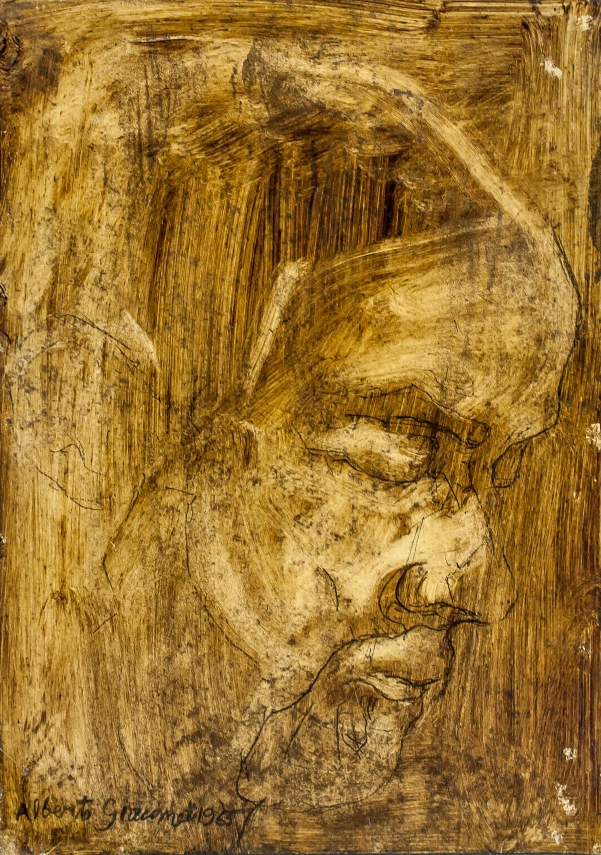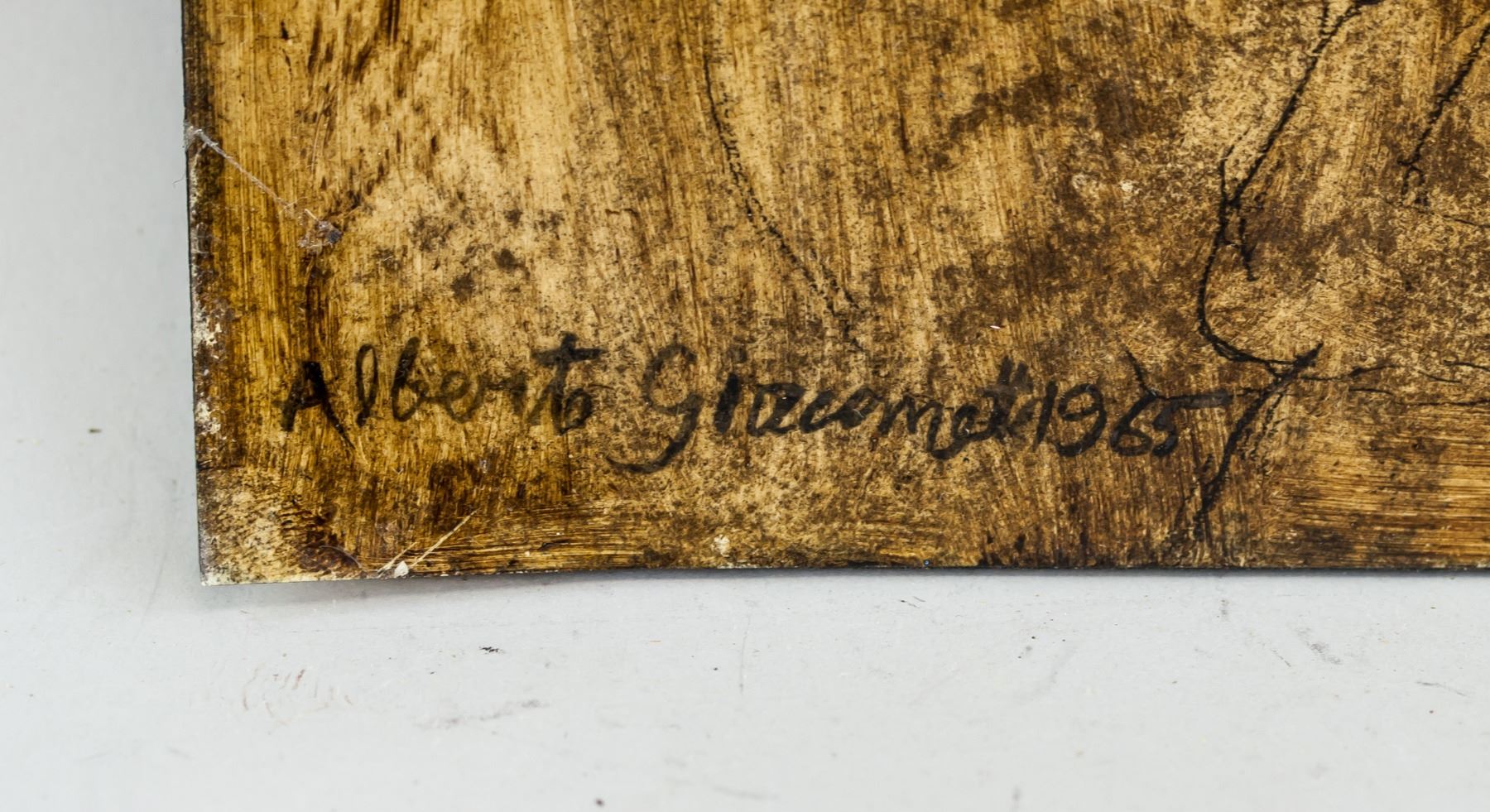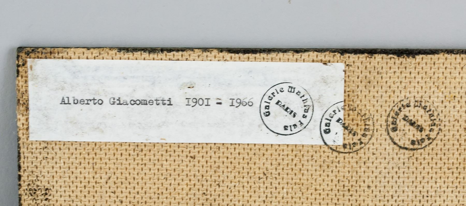 Mixed media on paper. Featuring a portrait. Signed Alberto Giacometti on the lower left corner. label affixed to verso inscribed Alberto Giacometti (1901-1966, Swiss). Stamped Galerie Mathias Fels PARIS on verso. Attributed to Alberto Giacometti (1901-1966, Swiss). 29.7 x 21 cm (11.75 x 8.25 in)
