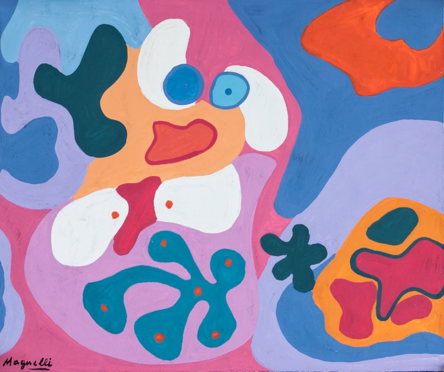 Alberto Magnelli (1888-1971) was an Italian modern painter who was a significant figure in the post war Concrete art movement. Magnelli was born in Florence on July 1, 1888. In 1907 he started painting and, despite lacking formal art education, by 1909 he was established enough to be included in the Venice Biennale. His initial works were in a Fauvist style. Magnelli joined the Florentine avant-garde befriending artists including Ardengo Soffici and Gino Severini. He also visited Paris where he met Guillaume Apollinaire and the Cubists including Pablo Picasso, Fernand Léger, and Alexander Archipenko. By 1915 he had adopted an abstract style incorporating cubist and futurist elements. Over the next few years Magnelli returned to figurative work and drifted away from the Italian avant-garde, which was becoming more supportive of Fascism, which he opposed. By 1931 he had returned to abstraction in the form of concrete art[3] featuring geometric shapes and overlapping planes. He moved to Paris, where he joined the Abstraction-Création group[3] and became friends with Wassily Kandinsky, Jean Arp and Sophie Taeuber. Following the invasion of France by the Nazis, Magnelli and his future wife, Susi Gerson, went to live in Grasse with several other artists including the Arps. Some of the group, including Gerson, were Jewish so they were forced to hide. Despite this, the group was able to produce a number of collaborative works. Following the Second World War, Magnelli returned to Paris which was to be his home for the rest of his life. He became a major figure in the post war concrete art movement and influenced artists such as Victor Vasarely, Nicolas de Staël as well as the concrete artists in South America such as Hélio Oiticica. He again exhibited at the Venice Biennale, this time with a whole room. Major galleries organised retrospectives of his work. Magnelli died on 20 April 1971 at his home in Meudon, Paris.