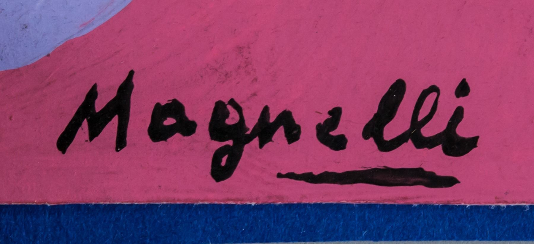 Oil on paper. Featuring an abstract expressionist composition. Signed magnelli on the lower left corner. Attributed to Alberto Magnelli (1888-1971, Italian). 19 x 23 cm (7.5 x 9.1 inches). PROVENANCE: Southern Ontario estate
