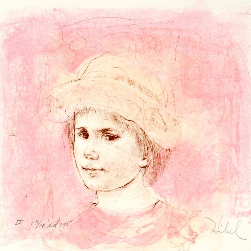"Alberto" is a limited edition lithograph on paper, numbered and hand signed by Edna Hibel (1917-2014). Includes Certificate of Authenticity! Measures approx. 14" x 15" (border) 9.5" x 9" (image).