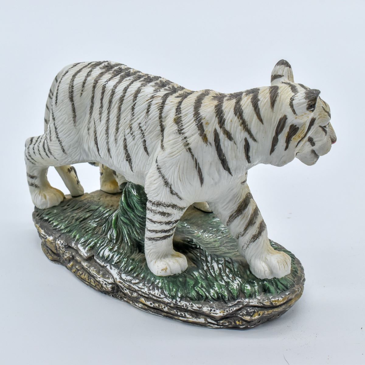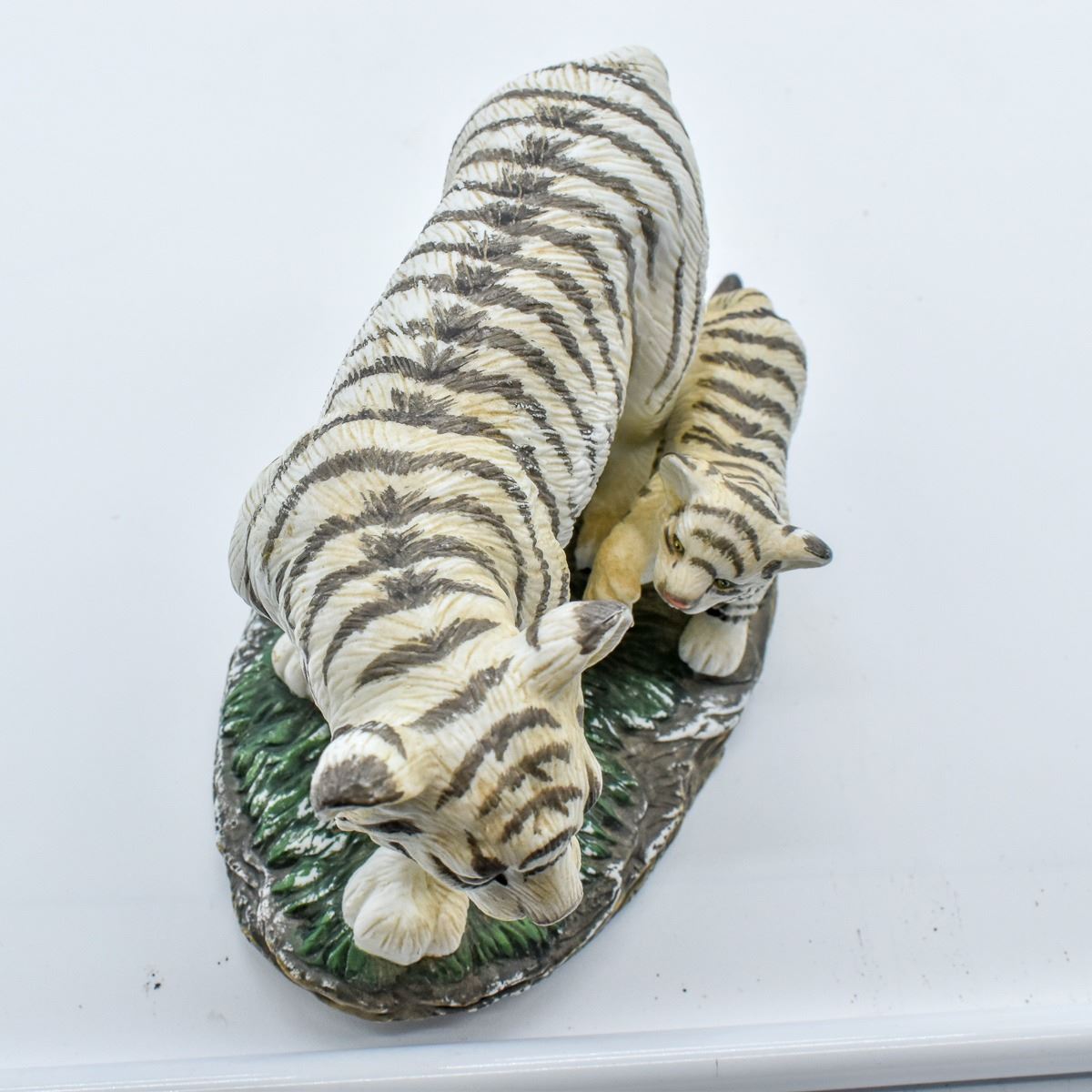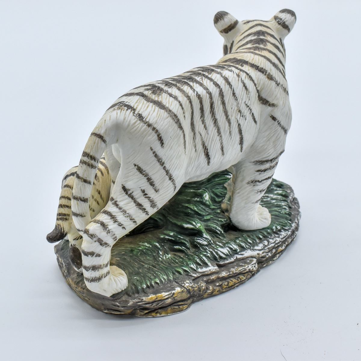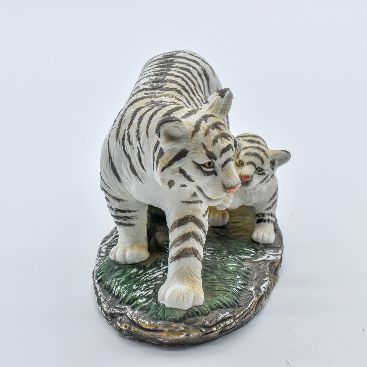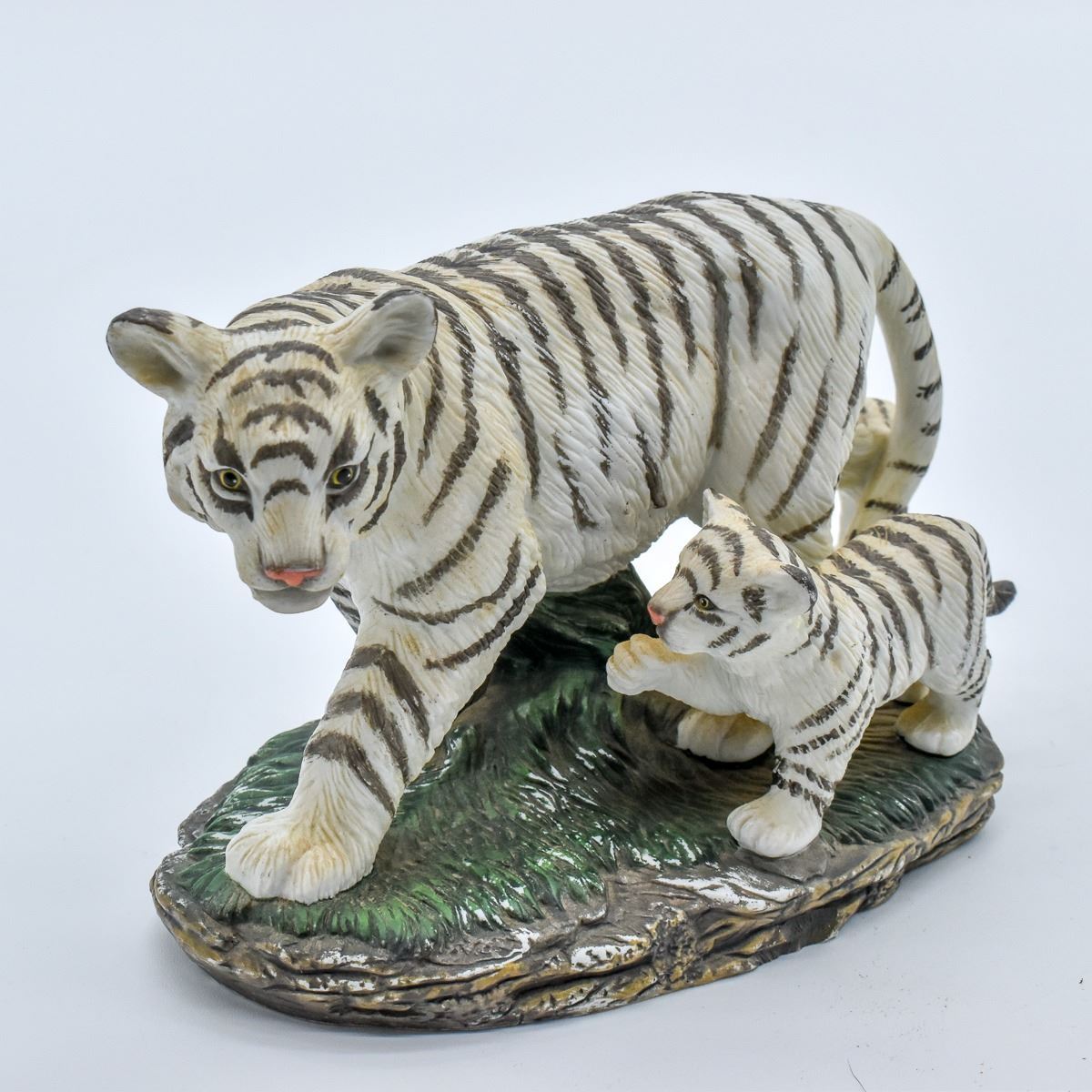 Albino Tiger with Cub Ceramic Figurine, measures 4'' x 5'' x 8''