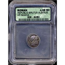 <TABLE cellSpacing=0 cellPadding=0 width="100%" bgColor=#000000 border=0><TBODY> <TR><TD width="100%"><TABLE cellSpacing=1 cellPadding=3 width="100%" border=0><TBODY><TR><TD width="100%" bgColor=#79735c><FONT face=arial color=#ffffff size=3><B>Description</B> </FONT></TD></TR><TR><TD width="100%" bgColor=#ffffff><FONT face=arial size=2><B>Albinus Bruti f.</B></I> 48 B.C. AR denarius (16 mm). Head of young Mars right, wearing a crested Corinthian helmet / Two gallic trumpets in saltire; oval shield above, round shield below. Crawford 450/1a; Sydenham 941; Postumia 11. AU50 ICG. </FONT></TD></TR></TBODY></TABLE></TD></TR></TBODY></TABLE><BR><A name=PricesRealized></A><TABLE cellSpacing=0 cellPadding=0 width="100%" bgColor=#000000 border=0><TBODY><TR><TD width="100%"><TABLE cellSpacing=1 cellPadding=3 width="100%" border=0><TBODY><TR><TD width="100%" bgColor=#79735c><A name=PR><FONT face=arial color=#ffffff size=3><B>Previous Prices from Heritage Auctions</B> </FONT></A></TD></TR><TR><TD bgColor=#f6f6ed>No Prior Data Recorded </TD></TR><TR><TD bgColor=#ffffff><FONT face=arial size=1 ?>PLEASE NOTE: All prices realized reflect the final hammer price PLUS the buyer's premium in auctions that charge a buyer's premium. Each item has a notation at the top of the listing indicating whether that lot included a buyer's premium. Example: A item that sells with a final hammer price of $100 and a 20% buyer's premium will display with a price realized of $120. All information listed is intended to be as accurate as possible, but errors are possible. Please use this guide carefully and inform us of any inaccuracies. </FONT></TD></TR></TBODY></TABLE></TD></TR></TBODY></TABLE><BR><TABLE cellSpacing=0 cellPadding=0 width="100%" bgColor=#000000 border=0><TBODY><TR><TD width="100%"><TABLE cellSpacing=1 cellPadding=3 width="100%" border=0><TBODY><TR><TD width="100%" bgColor=#79735c colSpan=6><FONT face=arial color=#ffffff size=3><B>Price Guide*</B> </FONT></TD></TR><TR bgColor=#f6f6ed><TD align=middle><B>Grade</B> </TD><TD align=middle><B>Coin World<BR>(Trends)</B> </TD><TD align=middle><B>Numismedia<BR>Retail</B> </TD><TD align=middle><B>Numismedia<BR>Wholesale</B> </TD><TD align=middle><B>Coin<BR>Universe</B> </TD><TD align=middle><B>Heritage<BR>Value Index</B> </TD></TR><TR bgColor=#ffffff><TD colSpan=6><FONT size=1>*All information listed is intended to be as accurate as possible, but errors are possible. No item may be returned or refused based on this information which is provided as a service to our customers. You should contact each pricing source directly to determine the accuracy of this information. </FONT></TD></TR></TBODY></TABLE></TD></TR></TBODY></TABLE><BR><TABLE cellSpacing=0 cellPadding=0 width="100%" bgColor=#000000 border=0><TBODY><TR><TD width="100%"><TABLE cellSpacing=1 cellPadding=3 width="100%" border=0><TBODY><TR><TD width="100%" bgColor=#79735c><FONT face=arial color=#ffffff size=3><B>Population Guide</B> </FONT></TD></TR><TR bgColor=#ffffff> Important notice: Heritage usually auctions material at the rate of 200-250 lots per hour. On some occasions eBay Live bid software or the Internet may not be able to keep up with the pace of the auction. We recommend placing a realistic absentee bid now as insurance to avoid disappointment. Occasionally the auctioneer may eliminate or reject an eBay Live bid, and the auctioneer may also reopen a lot after the close of the eBay live bidding (usually because we missed an audience bid), and may reject your bid even if it shows you as the winning bidder. By bidding via eBay Live, you agree that Heritage may award the lot to another bidder at its sole discretion under the circumstances described above or any other reasonable circumstances. Also please note that all Heritage lots purchased through eBay Live carry a 20% Buyer's Premium. Please make sure you read the Terms and Conditions before you bid.</TD></TR></TBODY></TABLE></TD></TR></TBODY></TABLE>