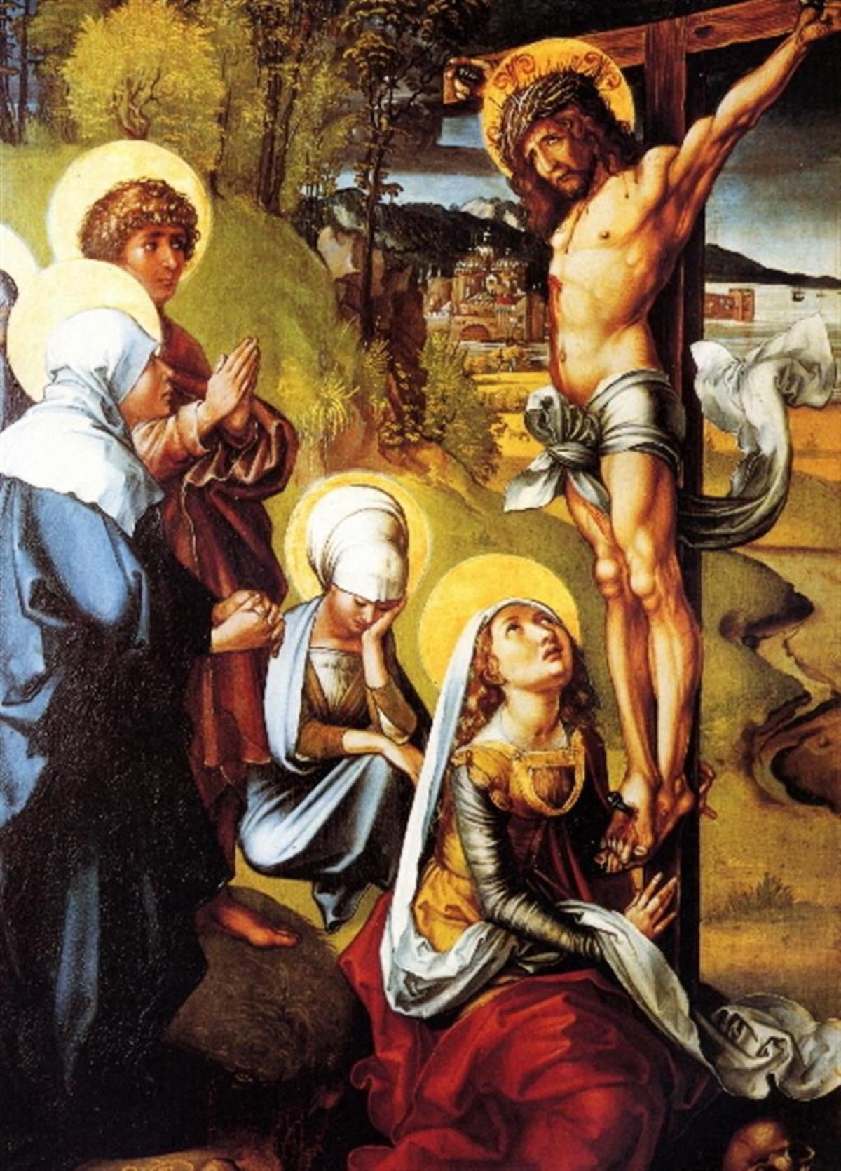 Artist: Albrecht Dürer - Title: Christ on the Cross - Medium: Fine Art Giclee on Canvas - Image Size: Approximately 20 inches x 14.5 inches - Unframed on Unstretched Canvas - Biography: Albrecht Dürer (c. May 1471 - April 1528), sometimes spelled in English as Durer or Duerer (without an umlaut), was a German painter, printmaker, and theorist of the German Renaissance. Born in Nuremberg, Dürer established his reputation and influence across Europe when he was in his twenties due to his high-quality woodcut prints. He was in communication with the major Italian artists of his time, including Raphael, Giovanni Bellini and Leonardo da Vinci, and from 1512 was patronized by Emperor Maximilian I. Dürer is commemorated by both the Lutheran and Episcopal Churches.His watercolours mark him as one of the first European landscape artists, while his woodcuts revolutionized the potential of that medium.