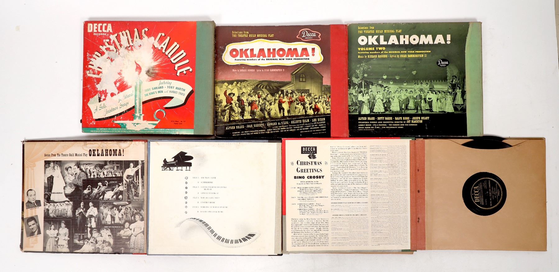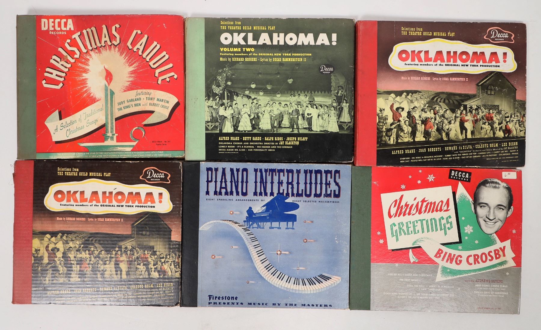 Empty 78 rpm album covers. Oklahoma, Oklahoma Selections x2, Christmas Candle, Christmas Candle by Bing Crosby, Piano Interludes. See photo.