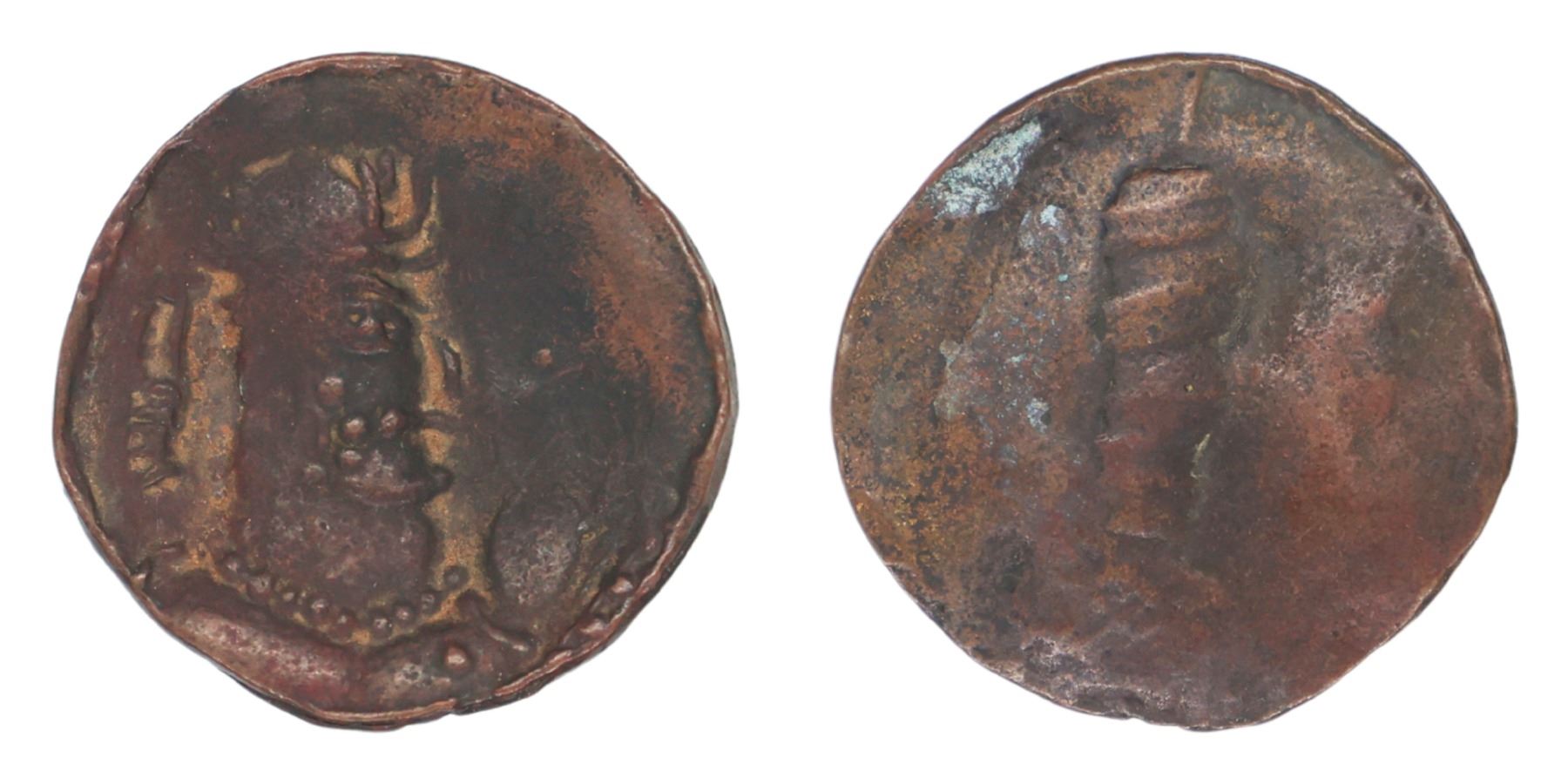 Narendra Huns, Ancient, Alchon Huns of Gandhara, Narendra, Copper Drachm, 2.56g, 22.37mm, Crowned bust of king to right holding flower, Uniface, (GOBL #150), Very Fine+, Rare.