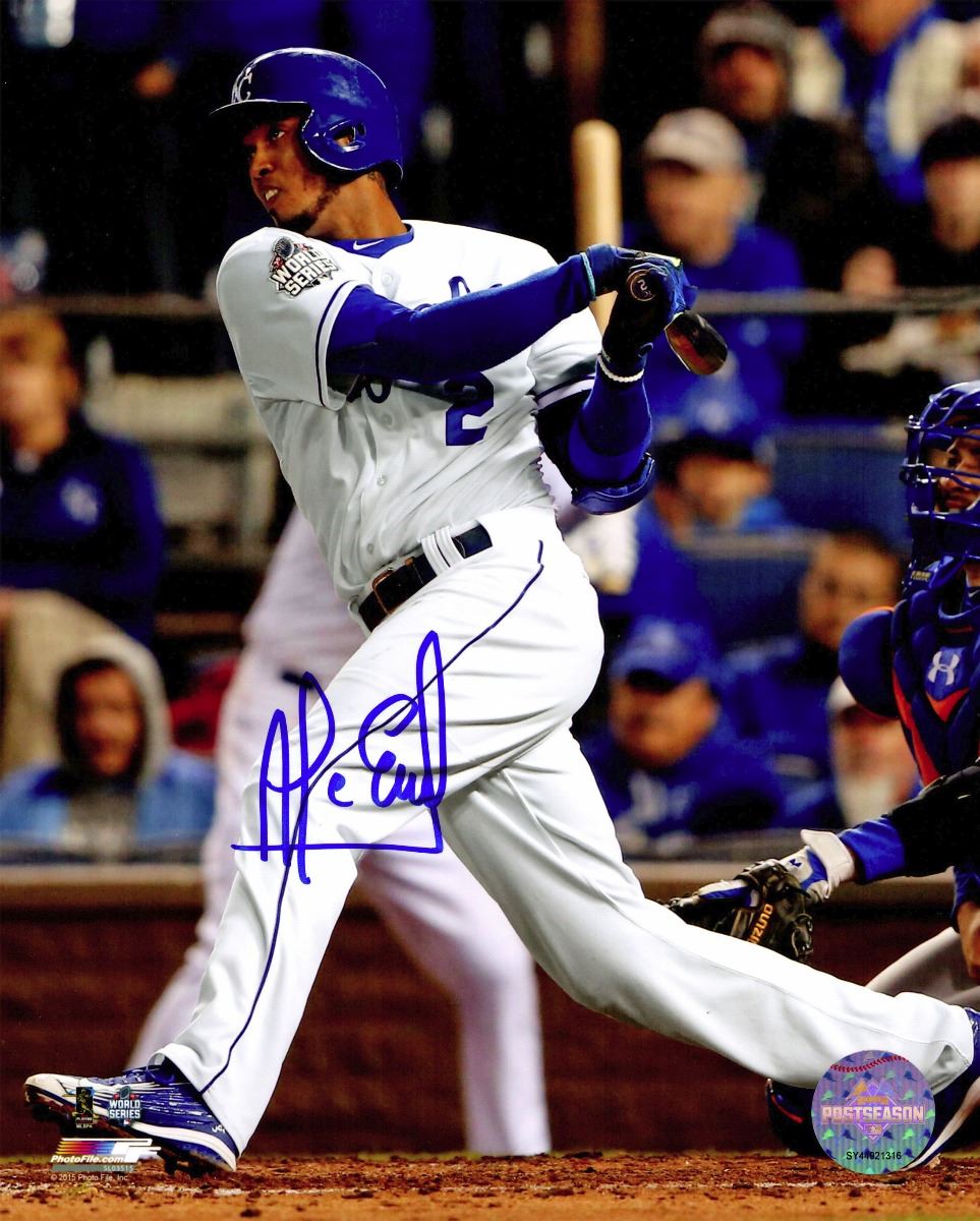 Alcides Escobar signed Kansas City Royals 2015 World Series swinging action 8x10 photo. Item comes with a Schwartz Sports Memorabilia tamper-proof numbered hologram and Certificate of Authenticity which can be verified online.