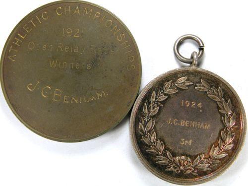 Aldershot Command Athletic Association, Presented 1921 JC Benham, Brass 39mm. Plus Southern Counties Cross Country Championship, Presented 1924 JC Benham, Silver 32mm