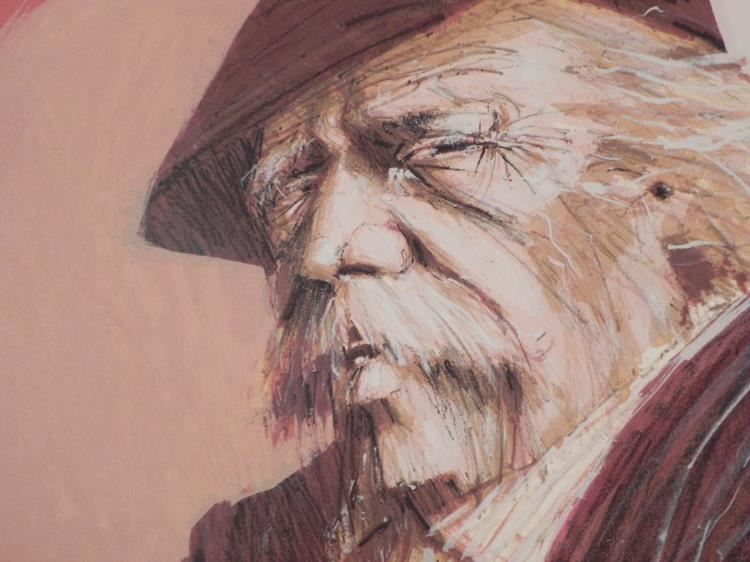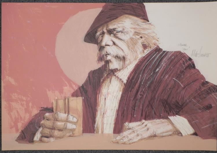 The old man at the bar has a captivating gaze, emphasized by energetic linework in his features, making for a great portrait. Artist: Aldo Longo Signature: "Aldo Longo" in pencil, center right Medium: Lithograph on rag paper Edition: Unnumbered, dedicated artist proof, marked in pencil "Michel, You" Sheet size: 33 1/2 x 23 inches Condition: Excellent Biography:From the artist's website: <a href="http://www.aldoluongo.com/Aldo_career%20highlights.html">HERE</a> We are pleased to present from an estate a group of dedicated artist proofs.