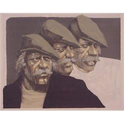 HAWK GENERATION, color lithograph, signed in pencil, from the numbered edition 200, image 20 x 25", full margins, light staining, toning and hinge remnants on verso. STARTING BID $20. ESTIMATE $20 TO $1000