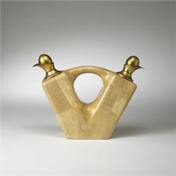Aldo Tura pitcher Tura Italy, 1960s lacquered goatskin, brass 14"w x 3.5"d x 10.5"h Signed with factory label.