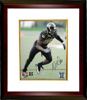 After being redshirted as a freshman in 2008, Smith started 11 of 13 games at defensive end in 2009. He finished the season with 60 tackles and 11 sacks. He was named the Big 12 Defensive Freshman of the Year and a first team freshman All-American. As a sophomore in 2010 he played in nine games, recording 48 tackles and six sacks. After the season Smith announced that he would forgo his final two years of eligibility and enter the 2011 NFL Draft. Private Signing 4/23/2011. Aldon Smith has hand signed this Missouri Tigers 8x10 Photo. Photo of the Signing and Certificate of Authenticity from Athlon Sports. Custom White Mat and Premium Mahogany Frame as shown.