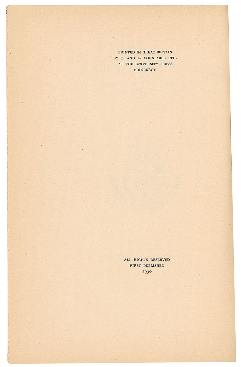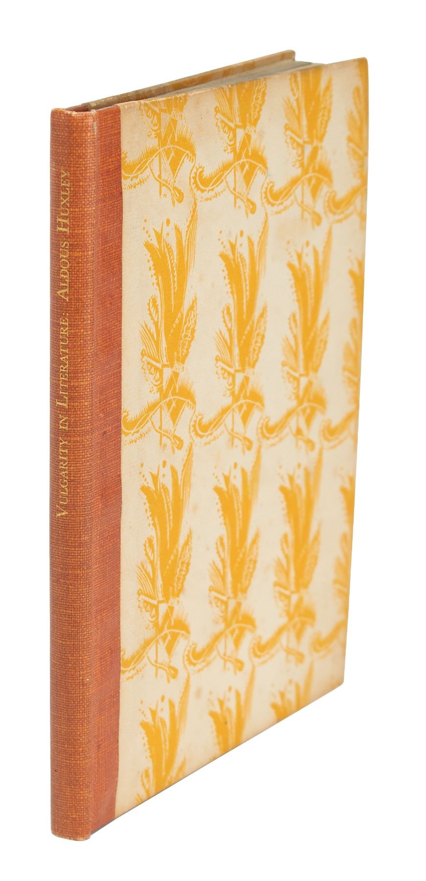 Signed book: Vulgarity in Literature. First edition, limited issue, numbered 254/260. London: Chatto & Windus, 1930. Hardcover, 5.75 x 8.5, 59 pages. Signed on the colophon in fountain pen, "Aldous Huxley." Autographic condition: fine. Book condition: VG+/None.
