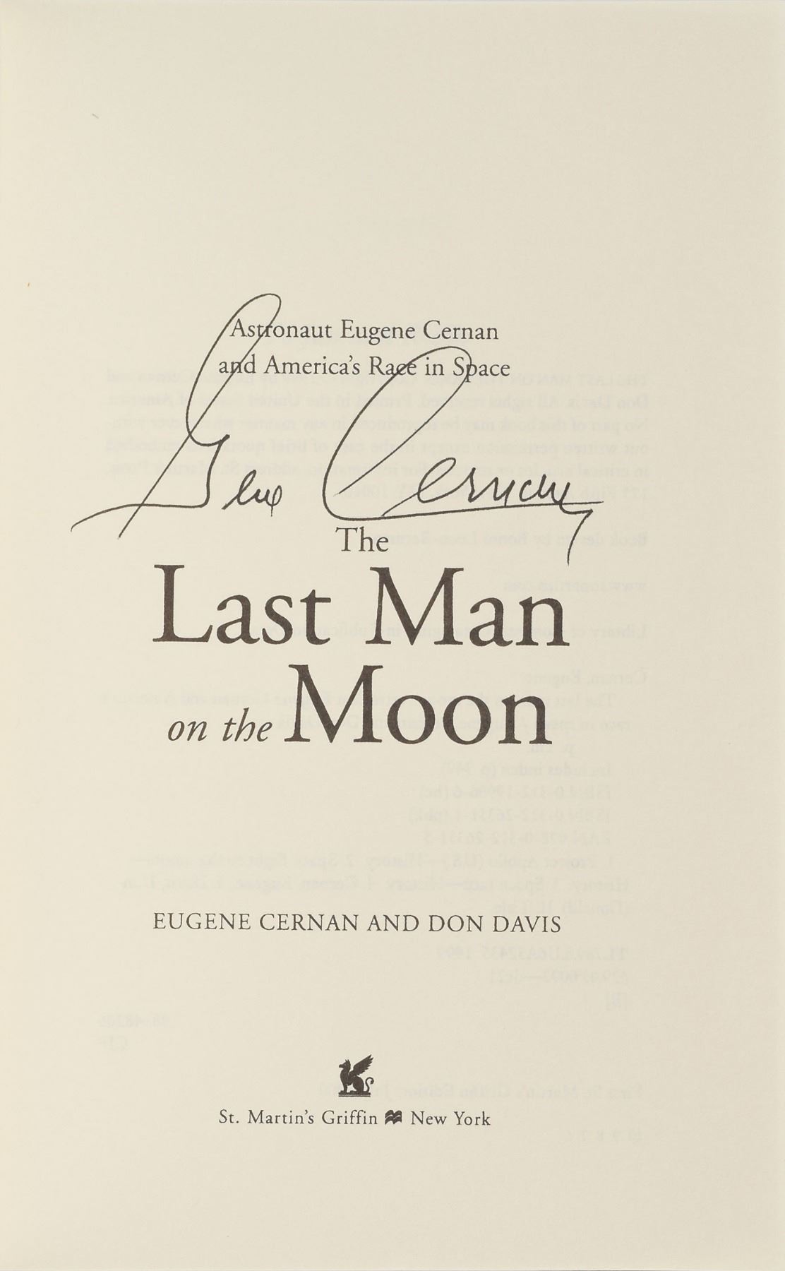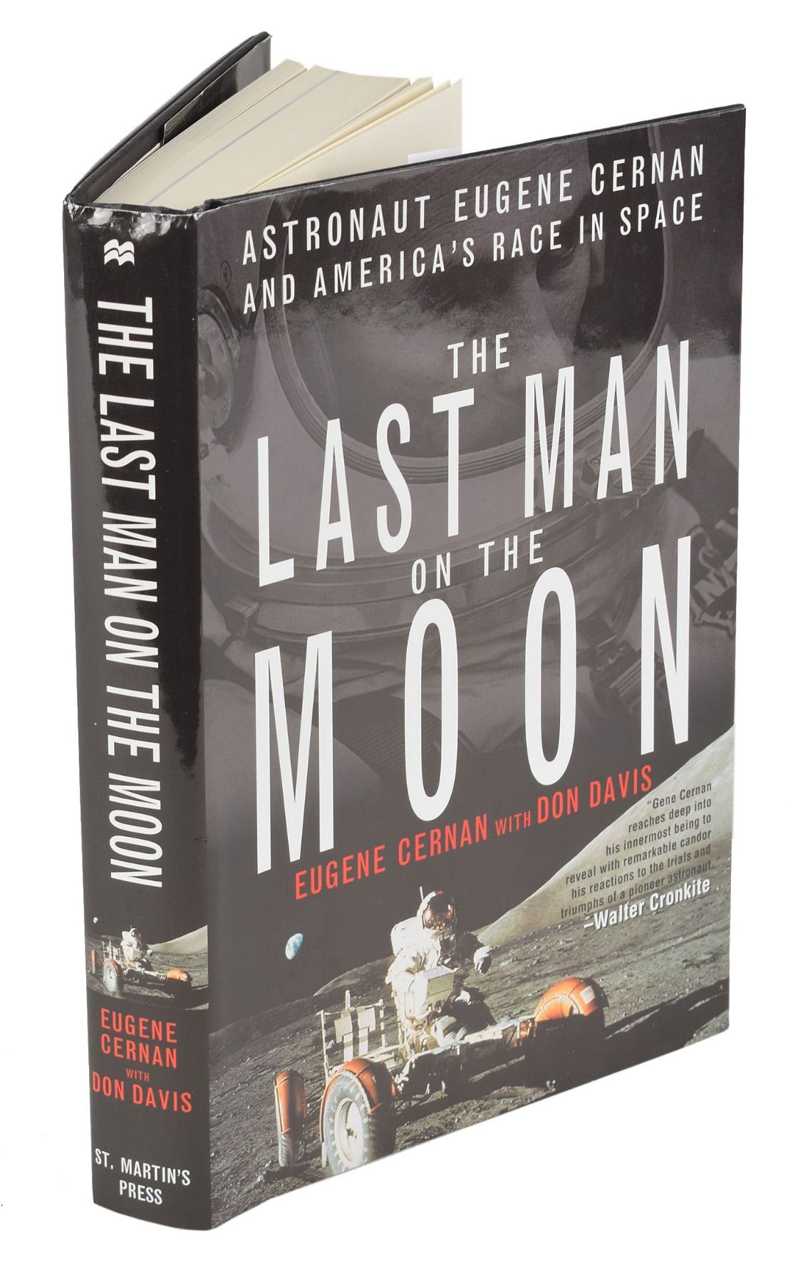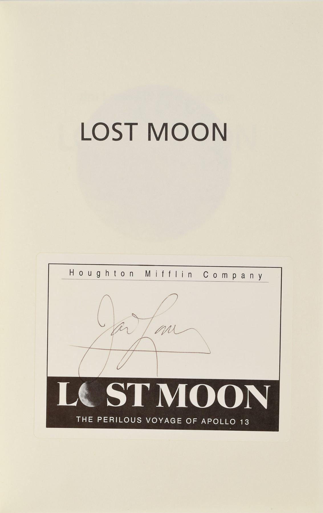 Three books: a copy of Mission to Mars, hardcover with dust jacket, signed on the title page in black felt tip by Buzz Aldrin; a copy of The Last Man on the Moon, hardcover with dust jacket, signed on the title page in black felt tip by Gene Cernan; and a copy of Lost Moon, hardcover with dust jacket, signed on a bookplate affixed to the half-title page in black ballpoint by James Lovell. In overall fine condition.