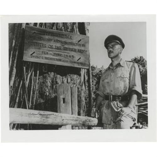 <B>Alec Guinness Autographed Photo.</B></I> A b&w 8" x 10" still of Guinness as Col. Nicholson from <I>Bridge on the River Kwai</B></I> (a performance which earned him an Academy Award), signed by Guinness in black ink in lower right quadrant. In Excellent condition.<BR><BR><b>Shipping:</b> Flat Material, Small (<a target="_blank" href="http://www.heritageauctions.com/common/shipping.php">view shipping information</a>)