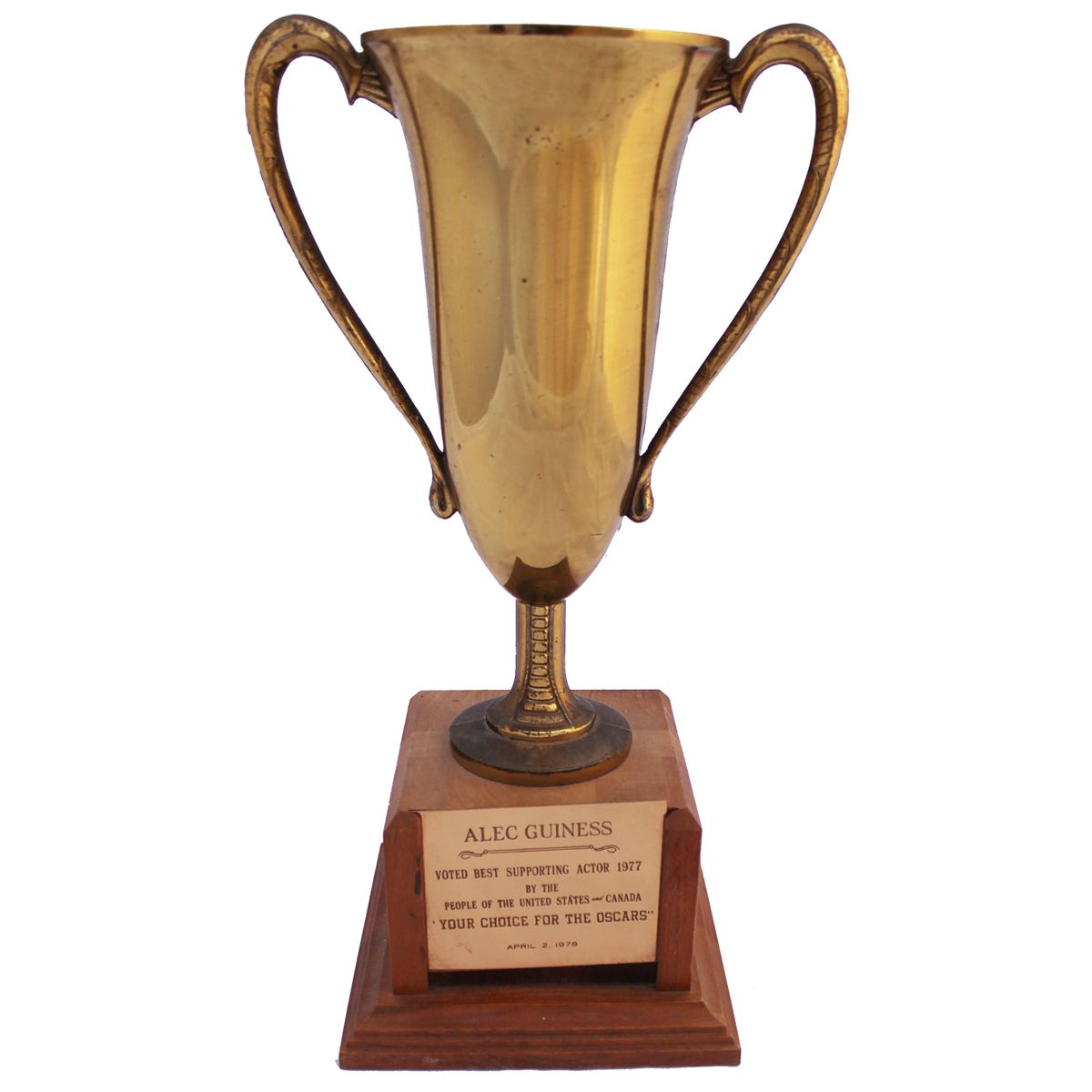 Sir Alec Guinness' 1988 Society of London Theatre Special Award. Named for the great British actor Laurence Olivier, these Olivier Awards are London's most prestigious theatre awards. A sculpture of Olivier in the role of Henry V tops the 10.75'' award with a plaque reading: ''The Laurence Olivier Awards 1988 / The Special Award / Sir Alec Guinness''. Guinness' stage career began in the 1930's and he would play more than seventy-five parts before it ended in 1989. The award, weighing 3.5 pounds, is in near fine condition.