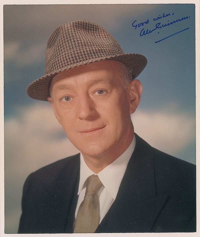 Glossy 8 x 10 photo of the British actor, signed in blue felt tip “Good wishes, Alec Guinness.” In fine condition, with light scattered marks and impressions.