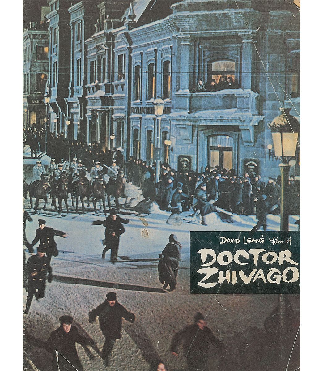 Vintage color movie program for Doctor Zhivago, 9 x 12, signed and inscribed in fountain pen on an inside page next to his biography, “For Janice—Good wishes, Alec Guinness, 1966.” Scattered creases to inside pages, a bit heavier to covers, otherwise fine condition.