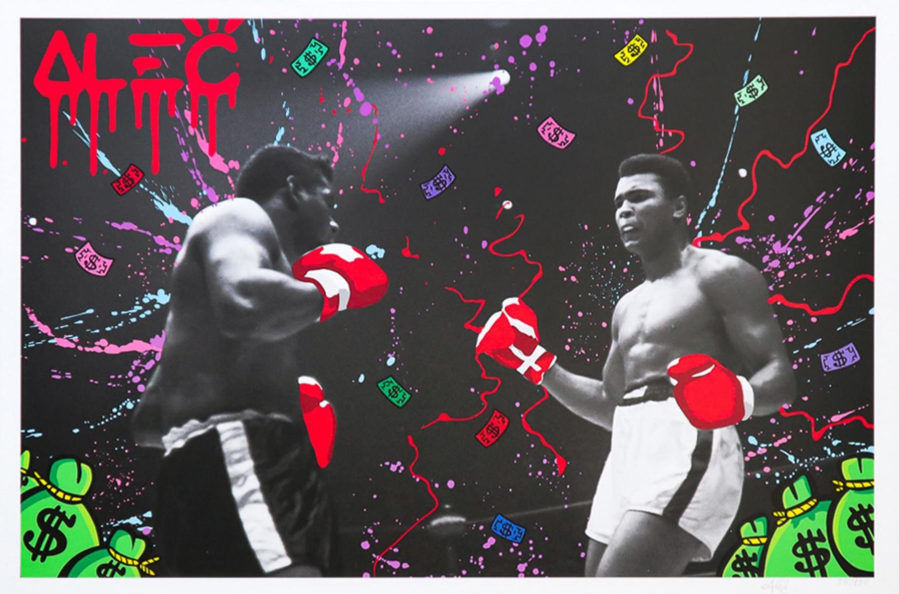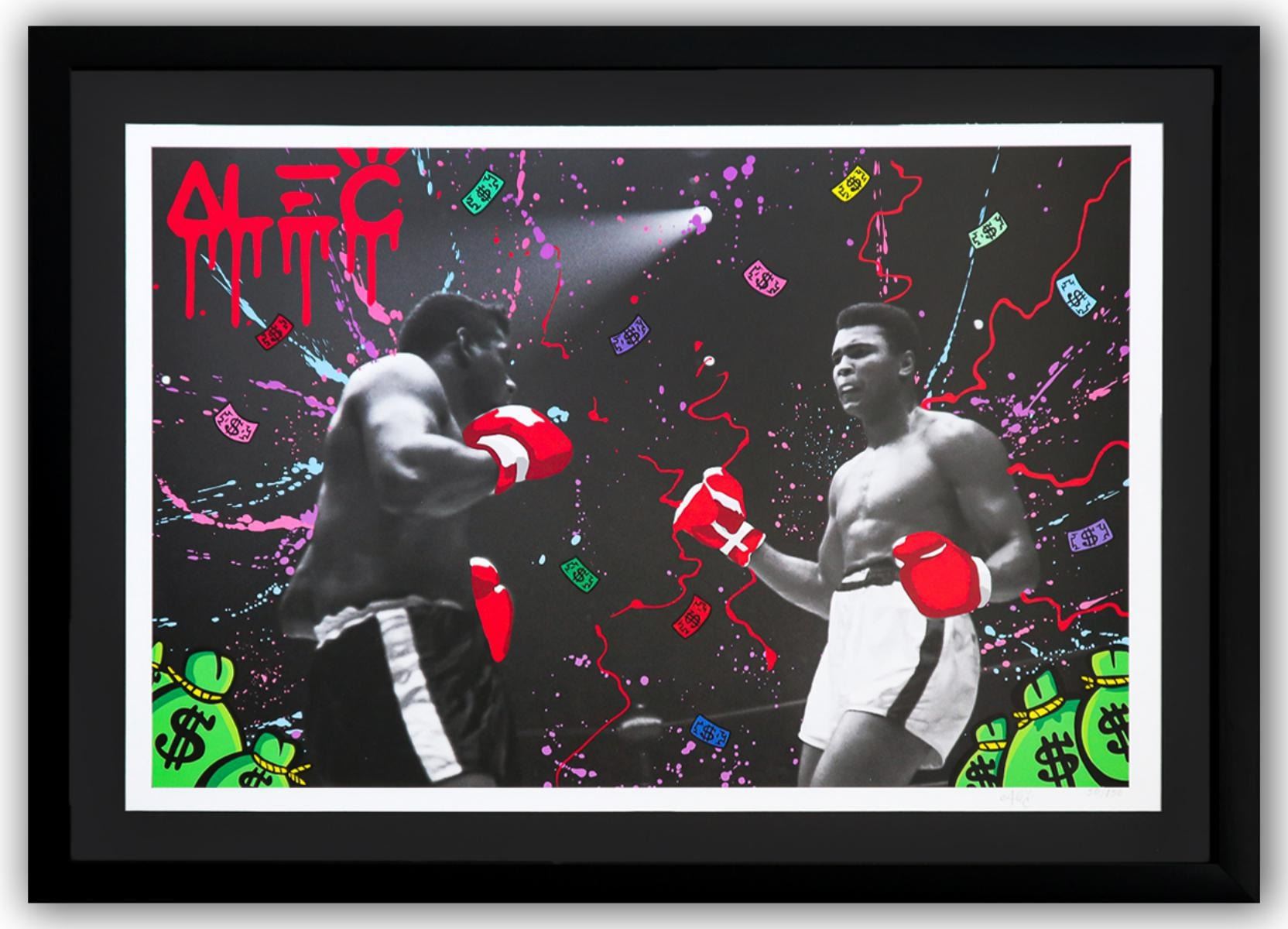 Artist: Alec Monopoly. Medium: GICLEE ON HEAVY WATERCOLOR PAPER. Title: The Greatest of All Time. Size (Unframed): 24" x 36". Measures approx. (Framed): 31" x 43". Certificate of Authenticity: Is included. Additional: Custom framed. Reference# 18868.