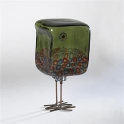 Alessandro Pianon Pulcini (chicken) Vistosi Italy, 1963 internally decorated glass, copper 4"w x 4"d x 8.25"h