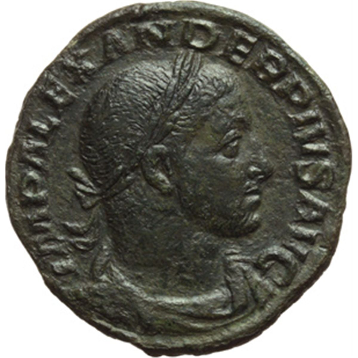 Impero Romano. Alessandro Severo (222-235). Sesterzio. D/ IMP ALEXANDER PIVS AVG. Busto laureato e drappeggiato a destra. R/ PM TR P XI COS III PP SC. Il Sole che avanza a sinistra, tiene una frusta e solleva la mano destra. RIC 525. AE. g. 20.74 mm. 31.00 qSPL.
