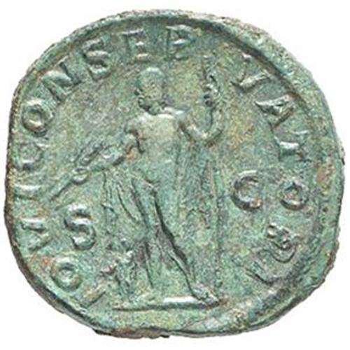 Impero Romano. Alessandro Severo (222-235). Sesterzio. D/ IMP SEV ALEXANDER AVG. Busto laureato a destra. R/ IOVI CONSERVATORI SC. Jupiter, stante a sinistra, tiene fulmine e scettro. Ai suoi piedi, Alessandro. RIC 558. gr. 19.98 AE. qSPL. Patina verde smeraldo.