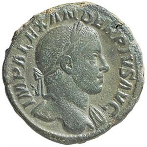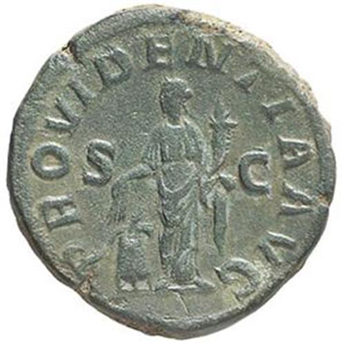 Impero Romano. Alessandro Severo (222-235). Sesterzio. D/ IMP ALEXANDER PIVS AVG. Busto laureato a destra. R/ PROVIDENTIA AVG SC. Providentia, stante di fronte con il capo a sinistra, tiene spighe su modio e cornucopia. RIC 642. gr. 21.12 AE. Bel BB+. Patina verde oliva.