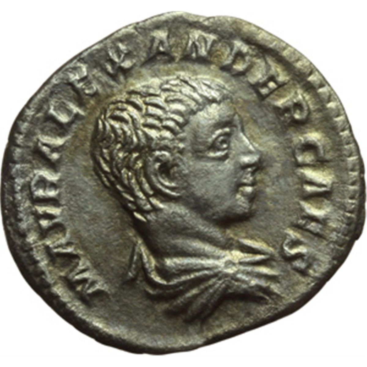 Impero Romano. Alessandro Severo Cesare (221-222). Denario. D/ M AVR ALEXANDER CAES. Busto a testa nuda, drappeggiato e corazzato a destra. R/ PIETAS AVG. Strumenti sacrificali. RIC 3. C.198(Fr.30). AG. g. 2.55 mm. 19.00 RR. Molto raro e attraente, con un ritratto che conserva i tratti di Elagabalo. Delicata patina dorata. SPL.
