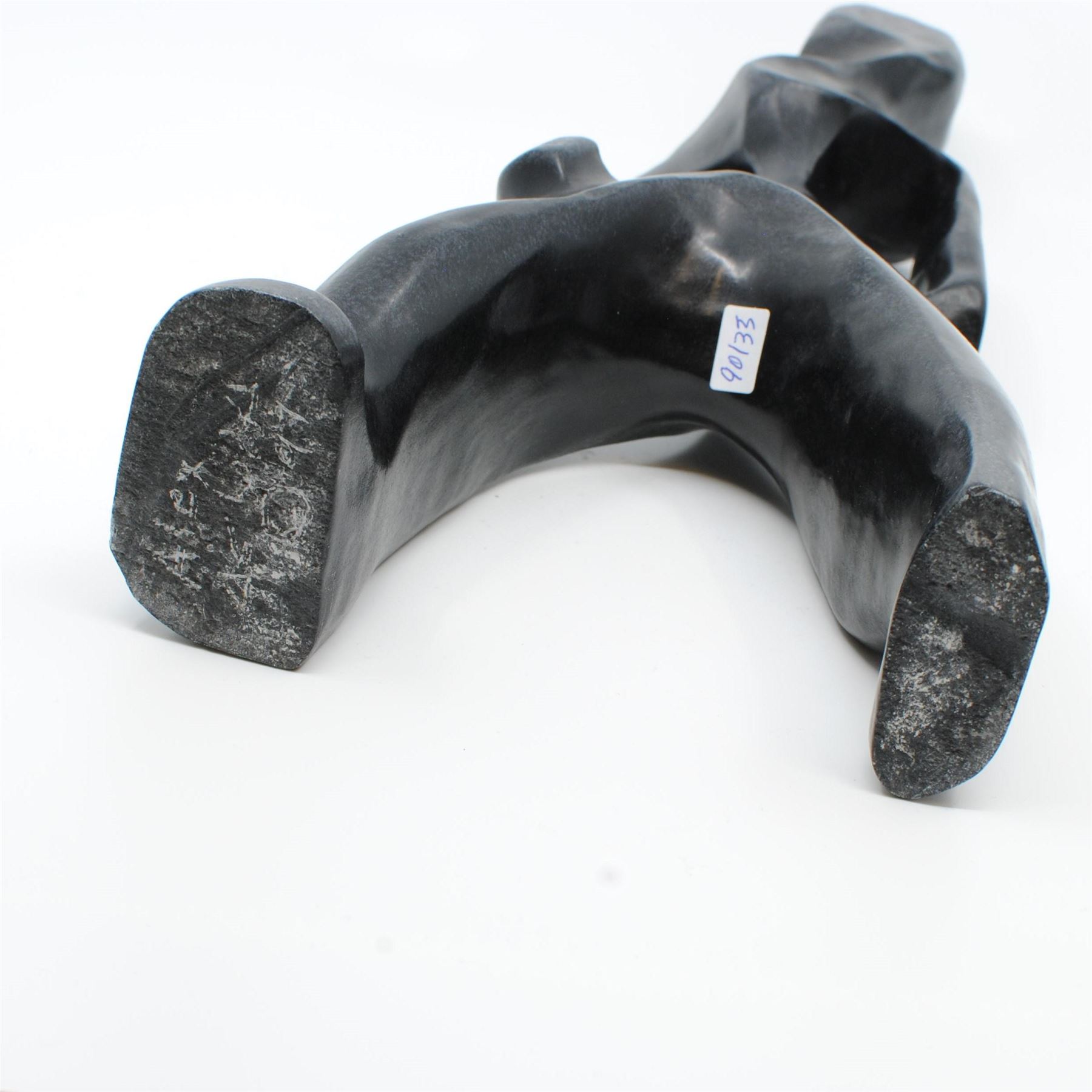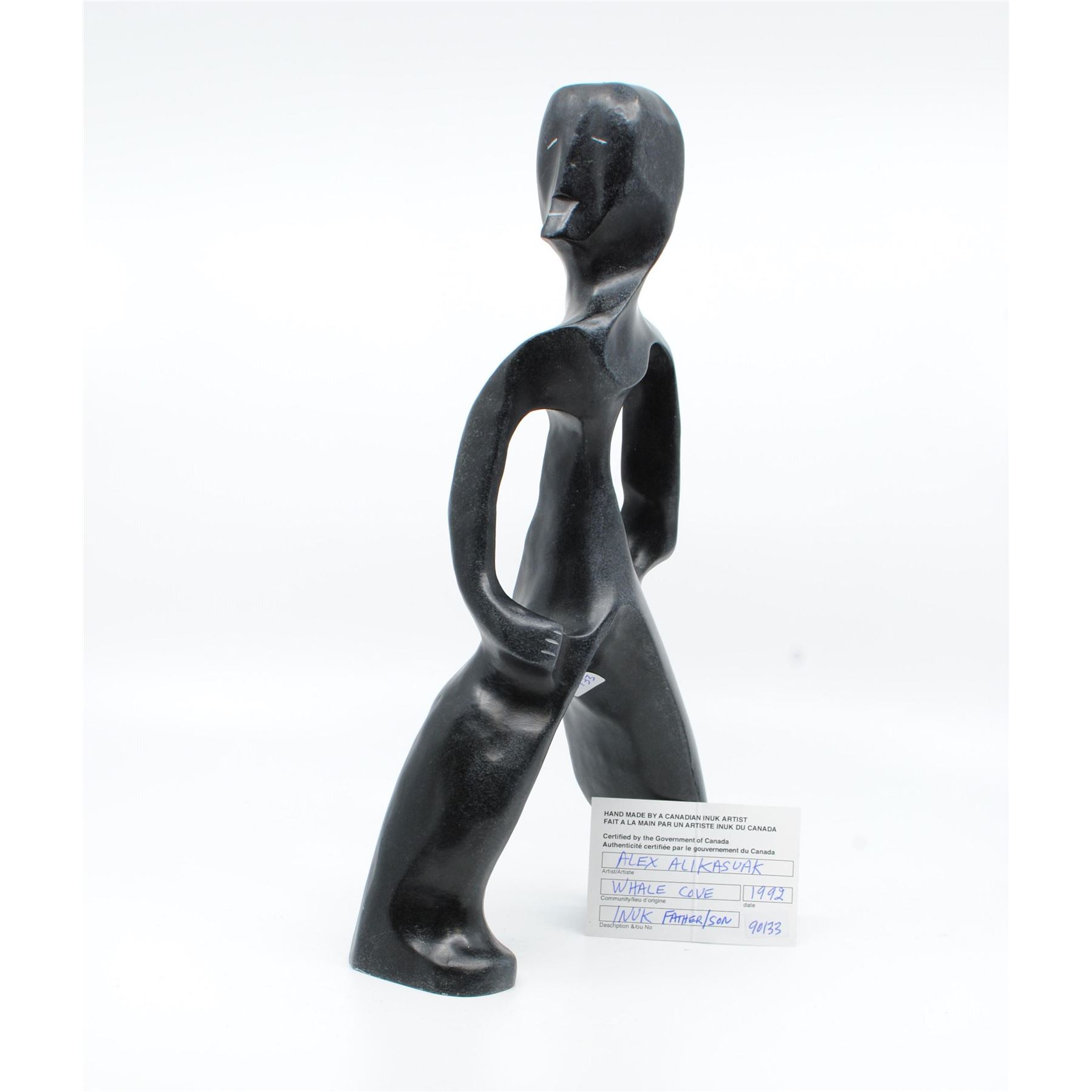 Alex Alikasuak's "Inuk Father/Son" original Inuit carving. Carved in 1992, from the community of Whale Cove. Carved fom stone, and certified by the government of Canada. This carving is in excellent condition. Included with its certification tag. 6" x 2 1/2" x 12"