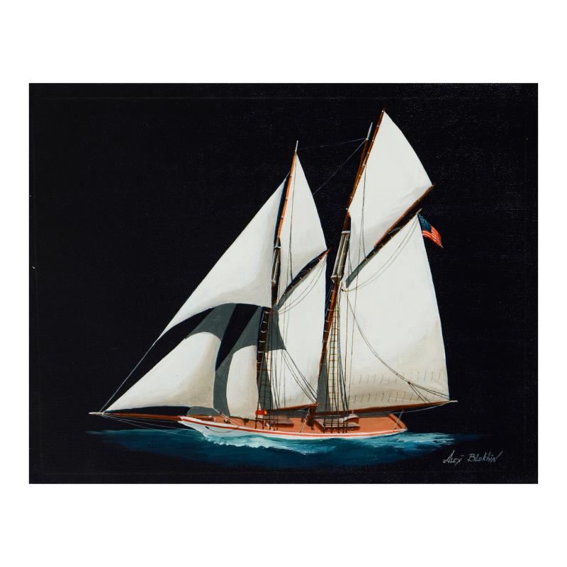 "Two Masted Schooner" is an original oil painting on canvas by Alex Blokhin, hand signed by the artist. Includes Letter of Authenticity. Measures approx. 18" x 14" (image).