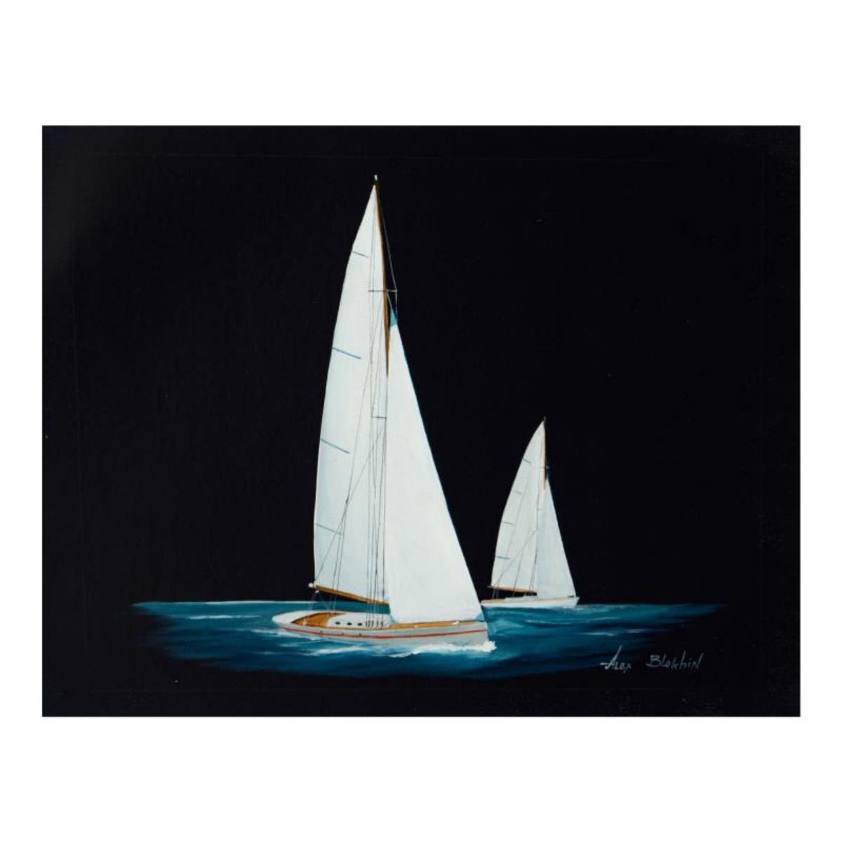 "Two Racing Yachts" is an original oil painting on canvas by Alex Blokhin, hand signed by the artist. Includes Letter of Authenticity. Measures approx. 18" x 14" (image). Reference #: 244201