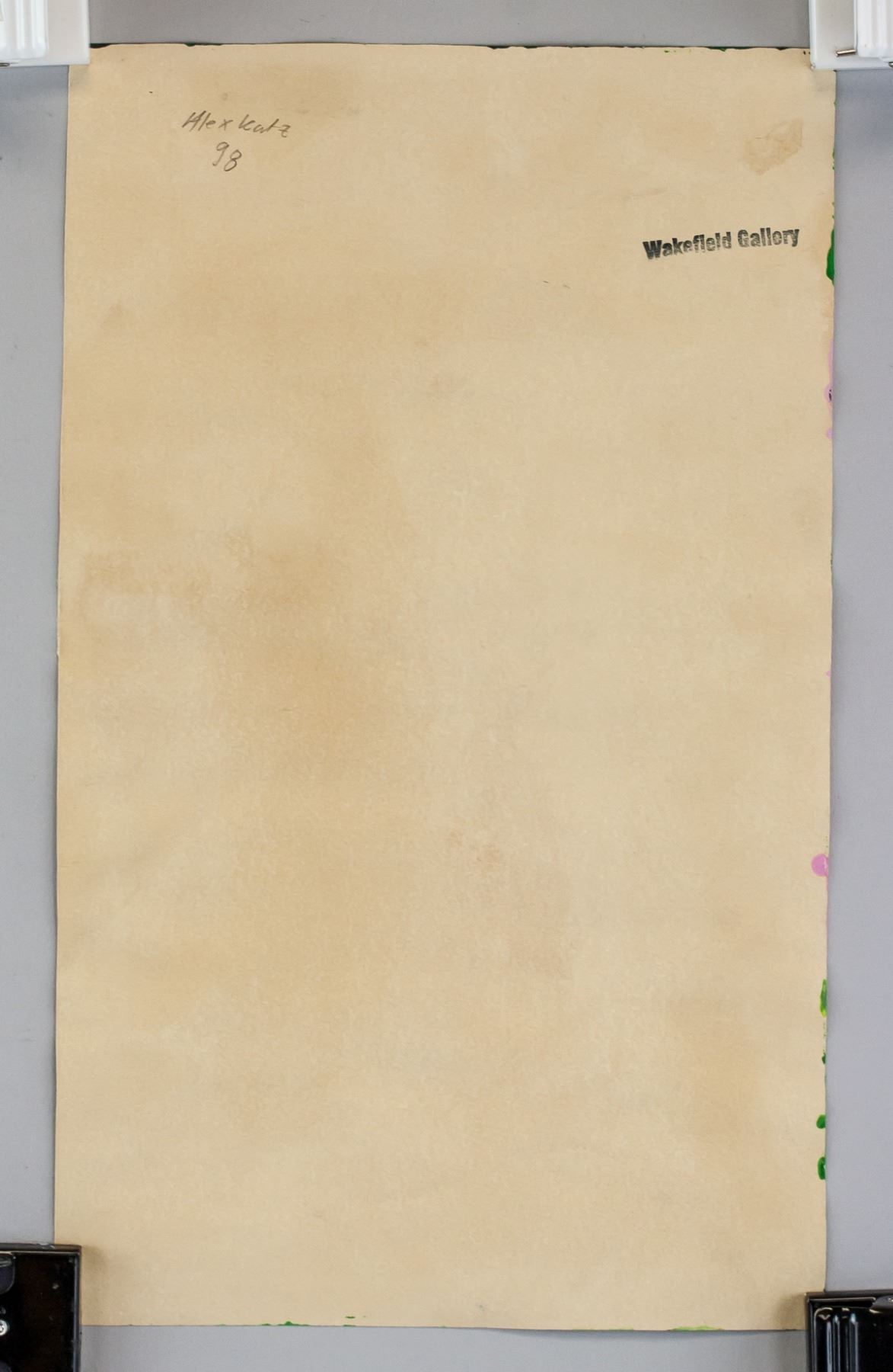 Mixed media on paper. Featuring a close still life of a flower. Signed Alex Katz on the lower margin. Inscribed Alex Katz 98 on verso. Stamped Wakefield Gallery on verso. Attributed to Alex Katz (born 1927, American). 29.5 x 17.5 cm (11.75 x 7.0 inches). PROVENANCE: Southern Ontario estate