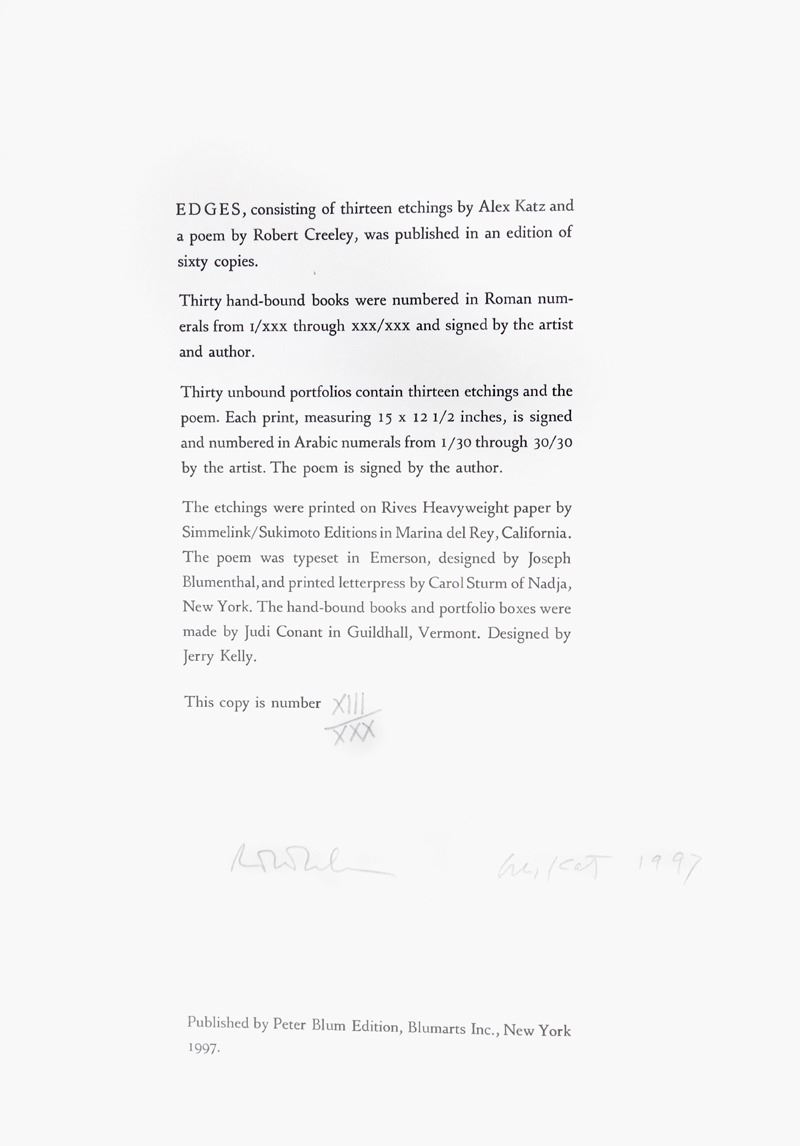 Alex Katz, Edges, Book of 13 Etchings with Robert Creeley Poem