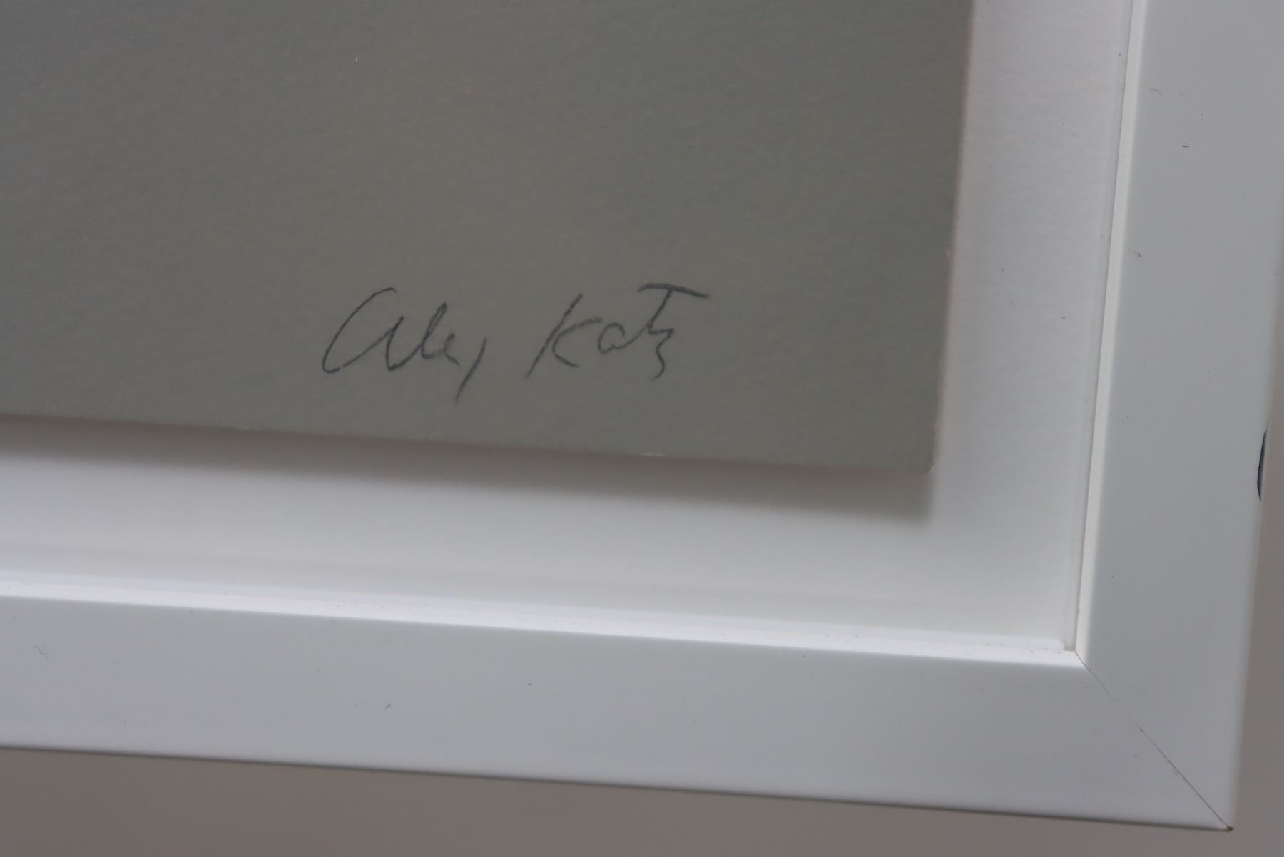Katz was born in Queens, New York, and studied at Cooper Union and did plein air painting in Skowhegan, Maine. He was inspired by the Japanese woodcuts of Kitagawa Utagaro, and his paintings show flatness of color and form, economy of line, and a cool, but seductive emotional detachment. His works are known worldwide, and a screen print titled “Sunset: Lake Wesserunsett 1” is held at the Whitney Museum of American Art in New York.
