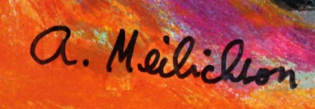 Artist: Alex Meilichson - Title: Yeshiva Bucher - Medium: Serigraph on Fine Art Paper - Signature: Hand-signed by the Artist - Limited Edition: 450 - Image Size: 12 inches x 9 inches - Paper Size: Approximately 13.5 inches x 10.5 inches - Unframed - Details: This work comes with a Certificate of Authenticity - Alex Meilichson has developed a figurative style, using a palette of brilliant colors. His favorite media are ink, acrylic and oil on canvas. He paints Judaic themes, landscapes and still life in an expressionist 'Ecole de Paris' approach. -