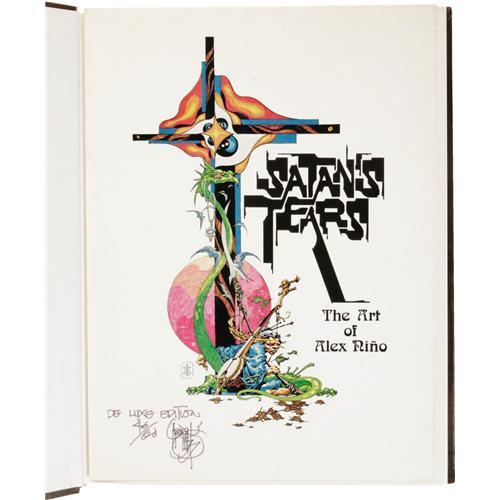<B>Alex Niño: Deluxe Limited Signed Edition of<I> Satan's Tears: The Art of Alex Niño.</B></I></B></I> (Detroit: Land of Enchantment, 1977), number 46 of the first 100 copies with numbered and signed Niño watercolor laid in, 301 pages, full leather binding with gilt titles, folio (10.5" x 13.5"), fine condition. A beautiful edition with many color and fold-out illustrations. <I>From the Ventura Collection.</B></I><BR><BR><b>Shipping:</b> Books & Catalogs (<a target="_blank" href="http://www.heritageauctions.com/common/shipping.php">view shipping information</a>)