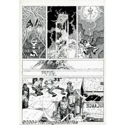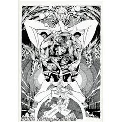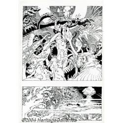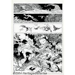 Alex Nino - Original Art for Complete 10-page Horror Story (undated). Despite our best efforts, we have not been able to determine where or when this tingly tale of terror was published (heck, we're not even sure of the title!), but we do know that this is some of the finest work we have ever seen from Alex Nino. In the last moments before death, a harried man goes on a bizarre odyssey, traveling through different eras and planes of existence. Nino pulls out all the stops here, filling every panel with obsessive detail, his characters stylized and elongated, landscapes mutating into fang-toothed creatures. This is about as nightmarish as comic book art can get, and there's nary a line out of place in this masterful phantasm of a story. Rendered on thick illustration board, these ten terror-filled pages measure 11.5" x 16.5" and are in excellent condition, with very slight blunting of the corners of some pages, which does not affect the artwork. Important notice: Heritage usually auctions material at the rate of 200-250 lots per hour. On some occasions eBay Live bid software or the Internet may not be able to keep up with the pace of the auction. We recommend placing a realistic absentee bid now as insurance to avoid disappointment. Occasionally the auctioneer may eliminate or reject an eBay Live bid, and the auctioneer may also reopen a lot after the close of the eBay live bidding (usually because we missed an audience bid), and may reject your bid even if it shows you as the winning bidder. By bidding via eBay Live, you agree that Heritage may award the lot to another bidder at its sole discretion under the circumstances described above or any other reasonable circumstances. Since eBay bids are not shown to us until we open the lot on the floor, we treat those bids just like floor bids. In most cases the floor responds before the eBay bid is presented to us, due to Internet lag time, so for consistency we have made it a policy that floor bids are always considered first over tie eBay live bids. Also please note that all Heritage lots purchased through eBay Live carry a 20% Buyer's Premium. Please make sure you read the Terms and Conditions before you bid.