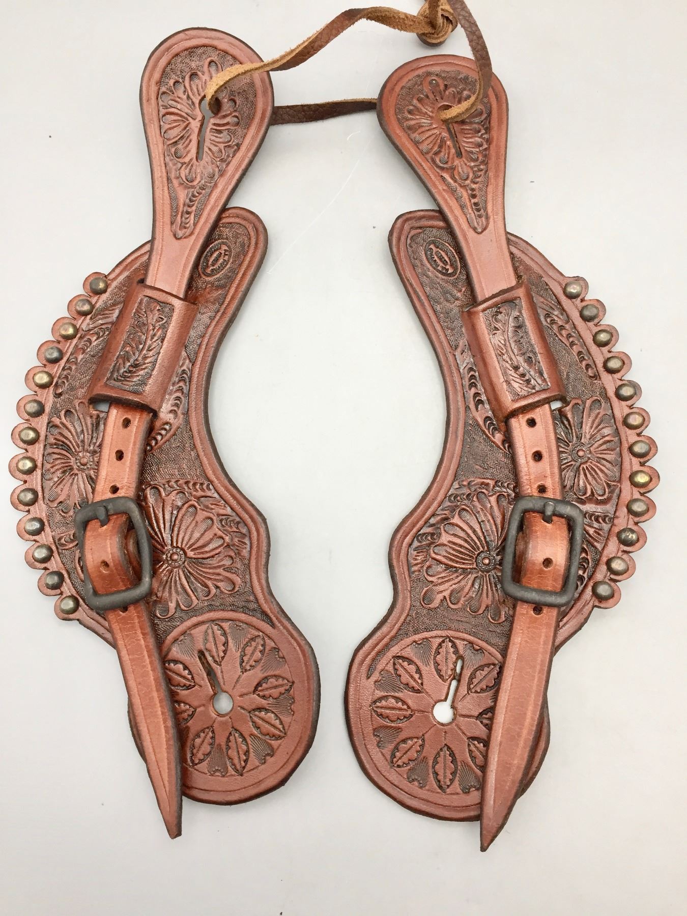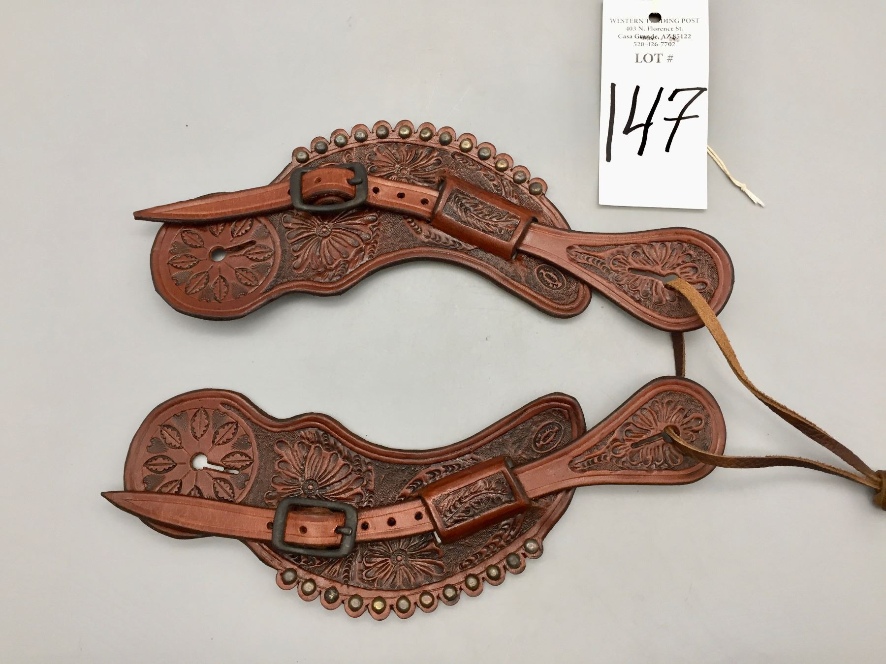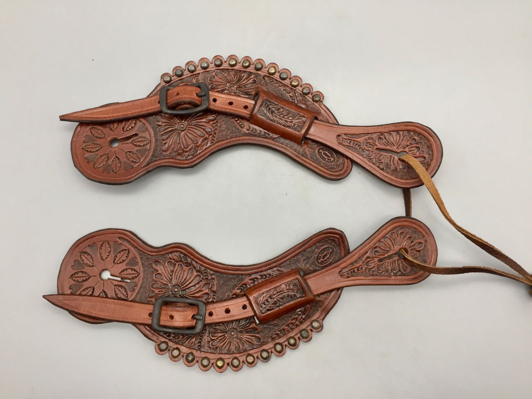 Description: Presented for sale in this lot is a great pair of handmade spur straps featuring tooled leather and metal accents created by Alex Pappas. Maker: Alex Pappas. Approx. Age: Modern. Size: 3-1/8”w x 11” long. Condition: Good for its age, normal wear expected. Please look closely at the pictures - they are an important part of our description. Shipping: There will be a $5 handling / packaging fee for shipping this lot. The actual cost of postage will be added on top of that.
